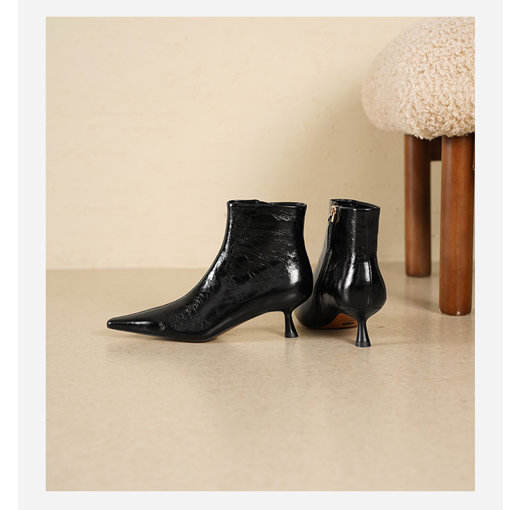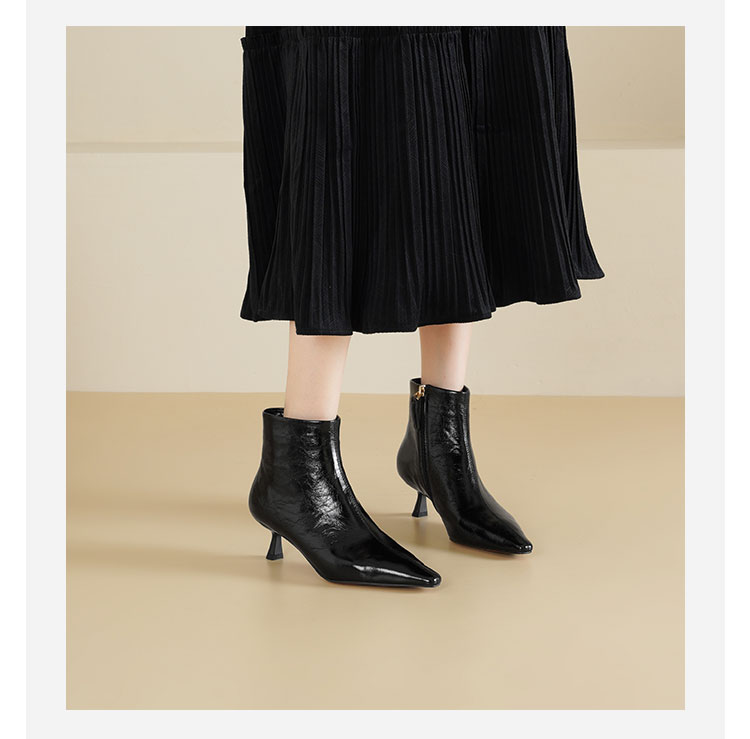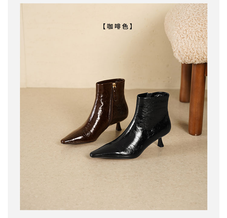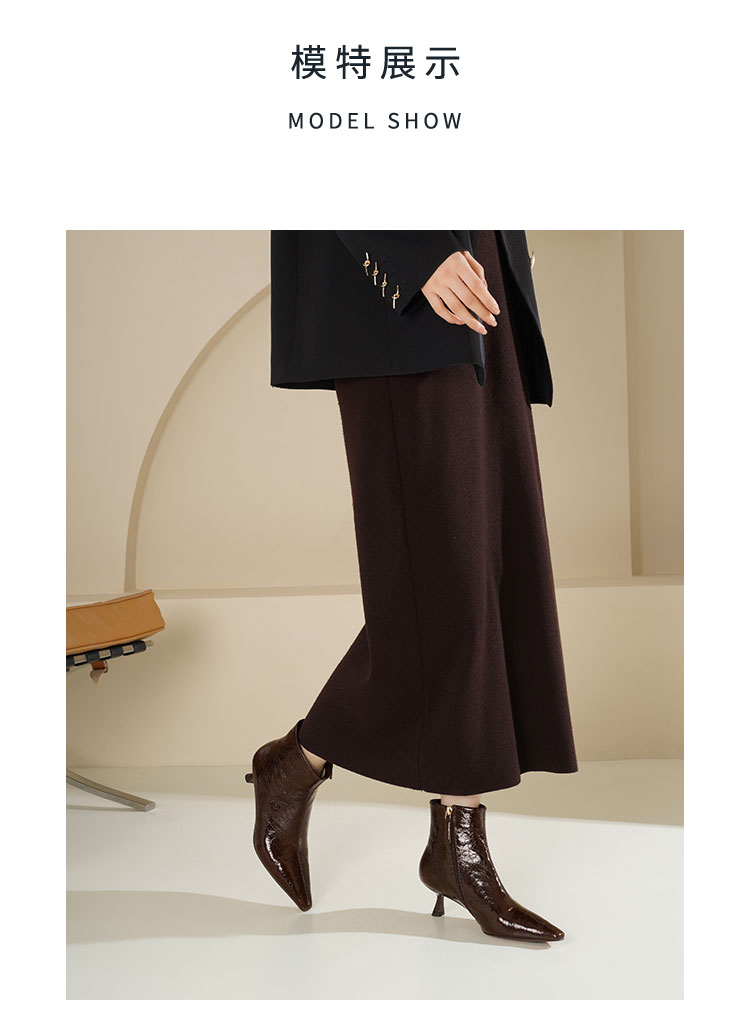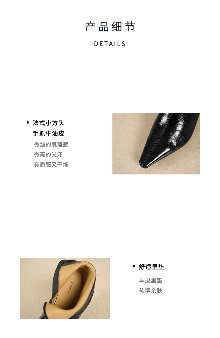 Westory2025年冬季小方头中跟抓邹牛油皮简约百搭短靴S25DS85931