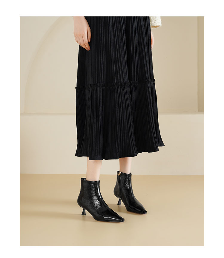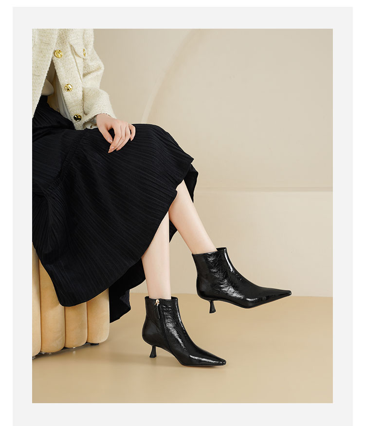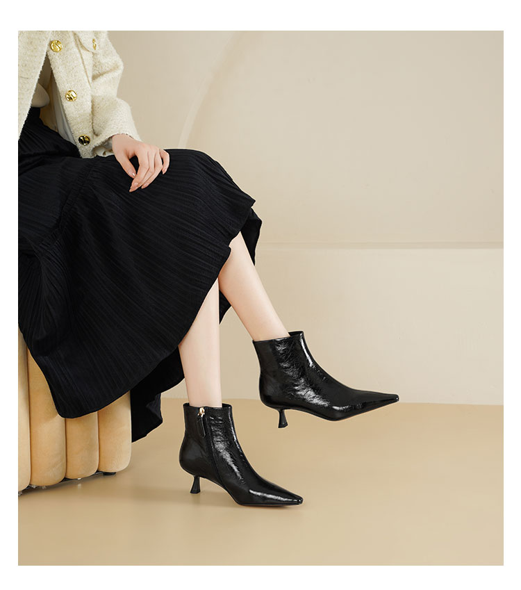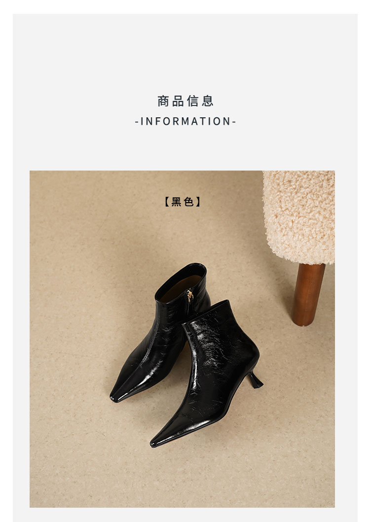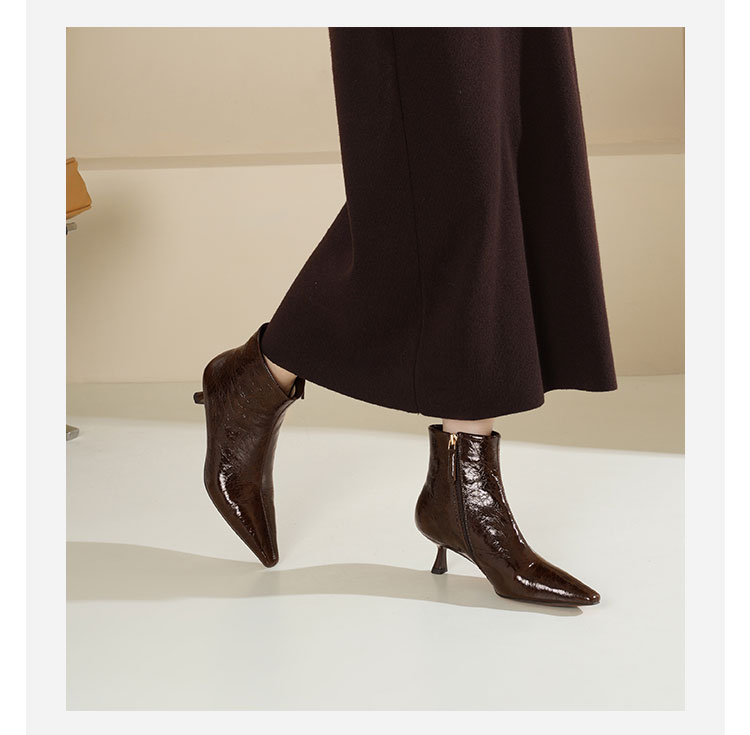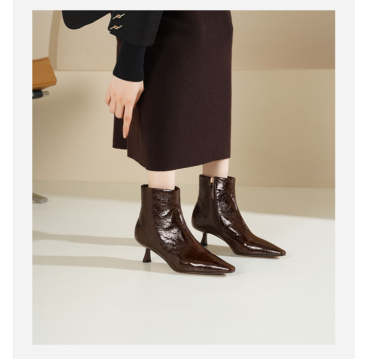 Westory2025年冬季小方头中跟抓邹牛油皮简约百搭短靴S25DS85931