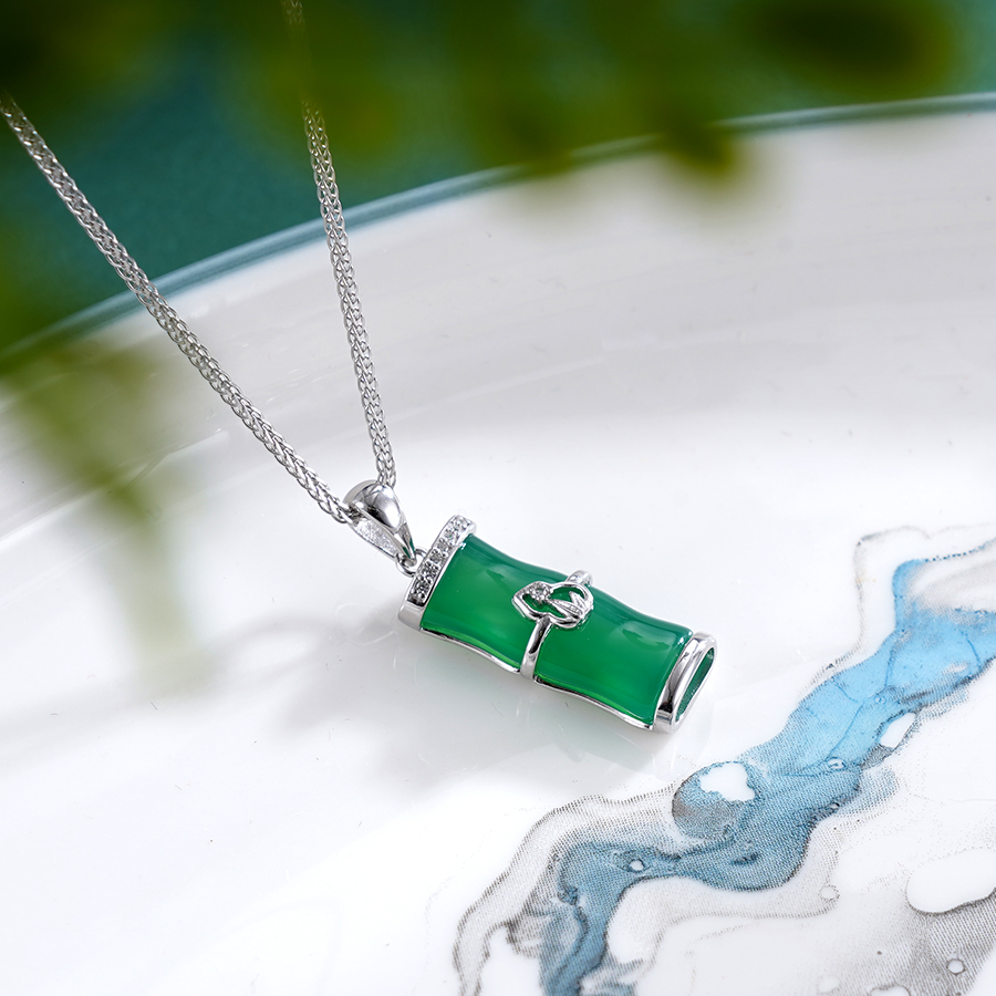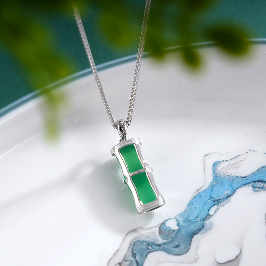 子佩集S925银【竹福之声】套链【TL015316】纯银项链玉髓绿玉髓竹节葫芦2503