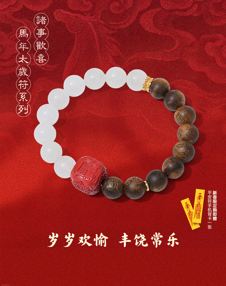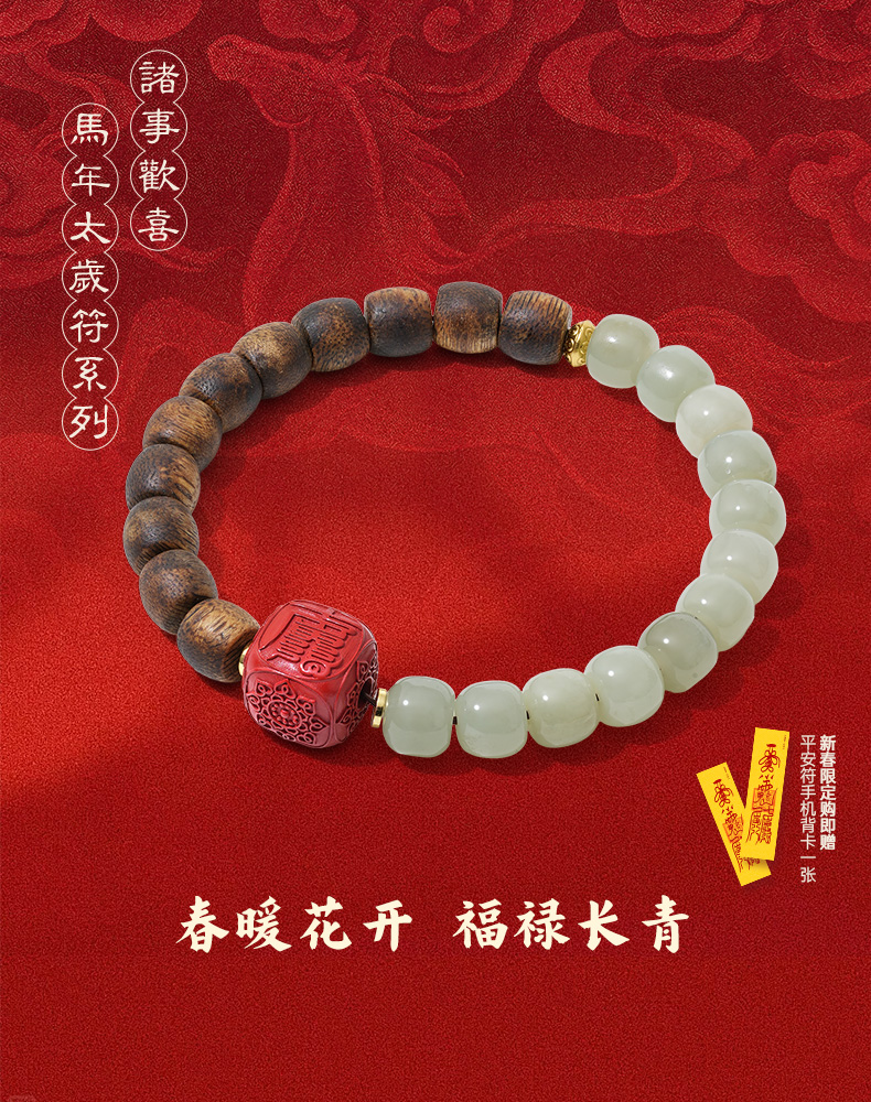 【马年太岁符 好运不打折】 钻石世家X心喜 诸事欢喜马年太岁符系列马年太岁符和田玉沉香手串 天山翠沉香手串六面 分旱吉文朱砂骰子水木相生福禄长【结缘定制、无质量问题不支持退换货】预计3-5天发货