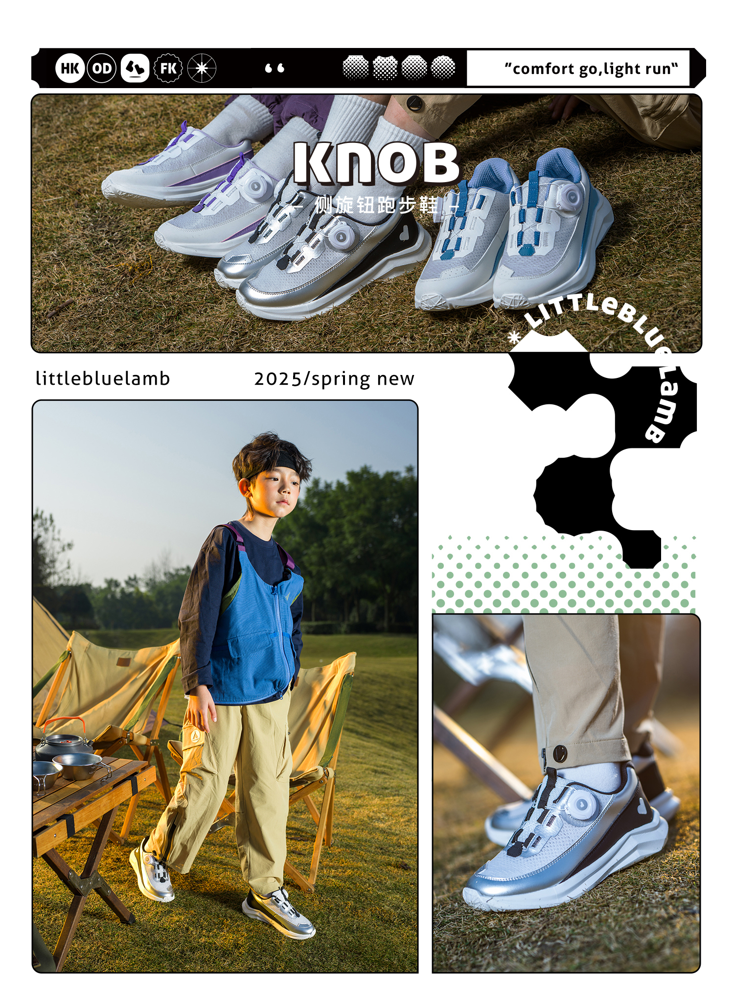 【云优选】小蓝羊2025春新款儿童运动鞋中大童校园篮球鞋超轻缓震儿童跑步鞋-侧旋钮跑步鞋 跑步篮球必备