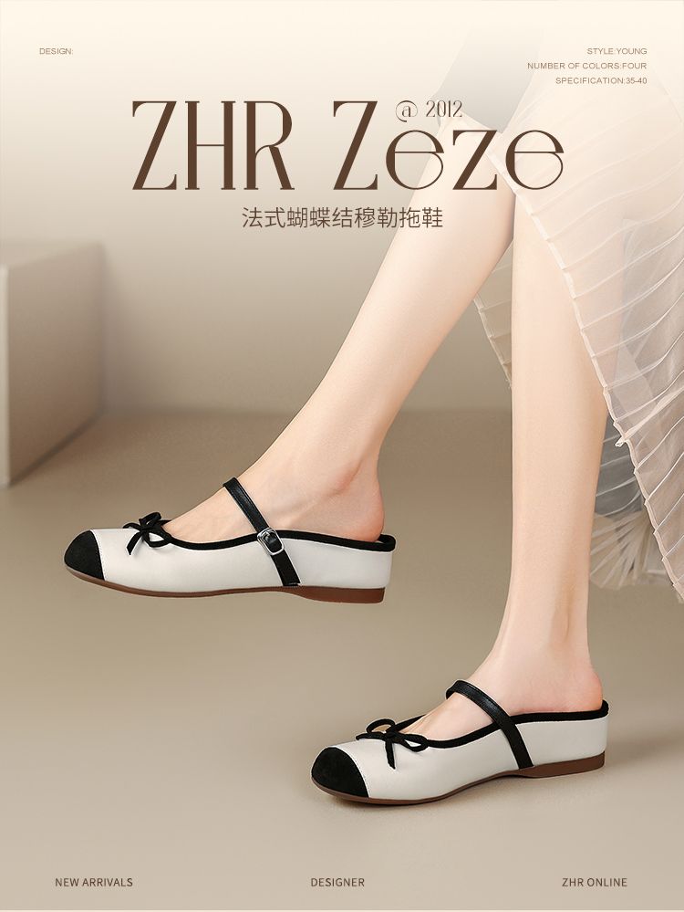ZHR则则真皮包头拖鞋2025新款内增高时尚外穿拖鞋气质通勤单鞋女