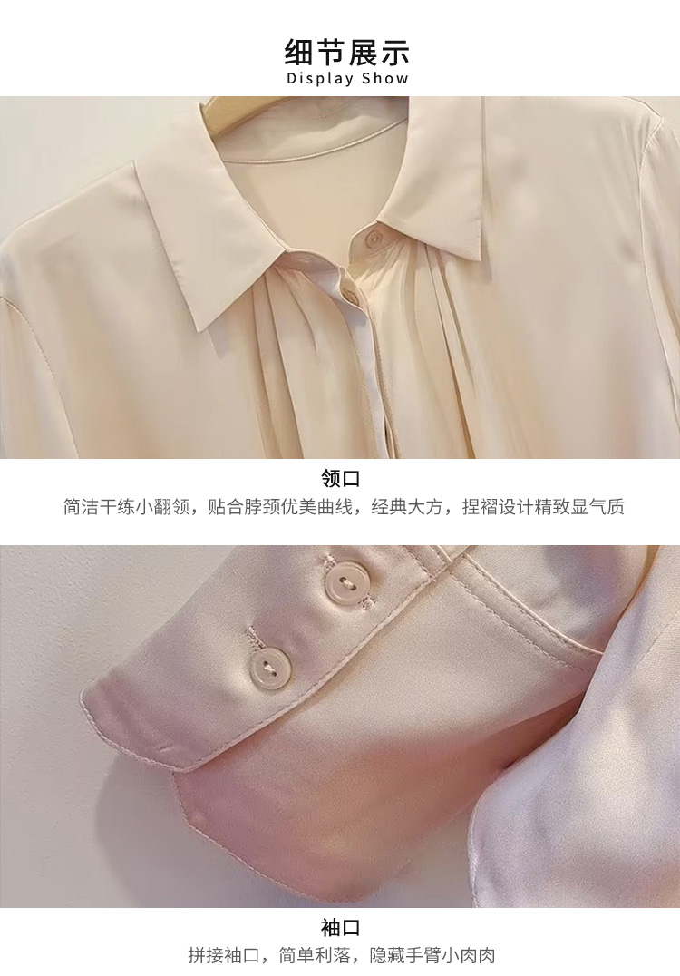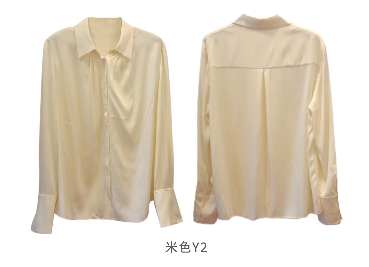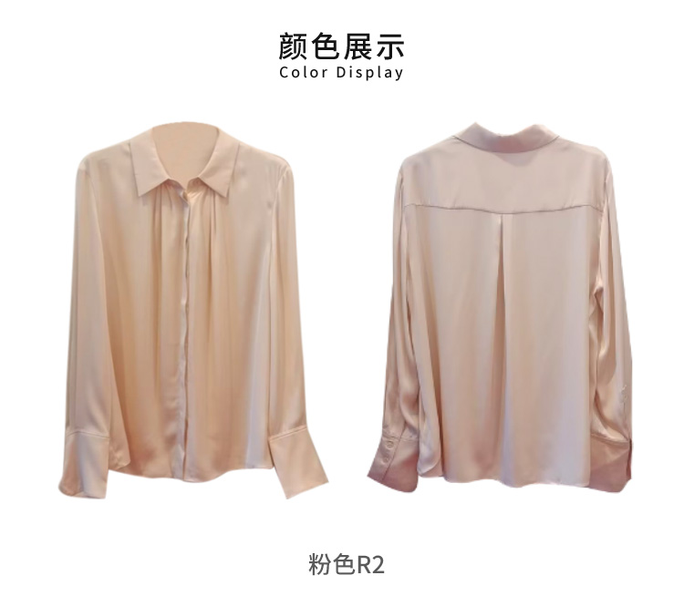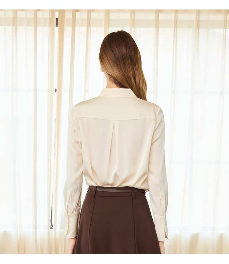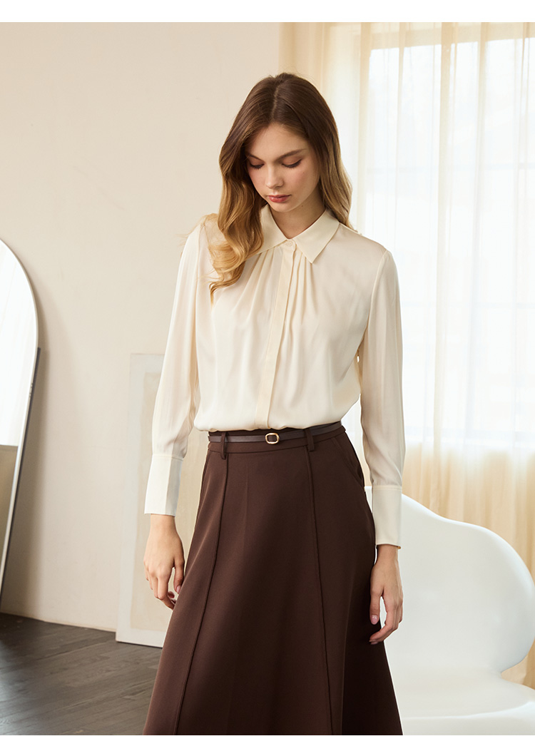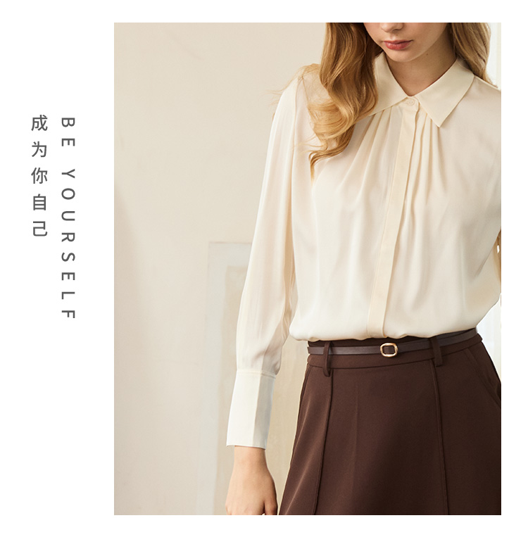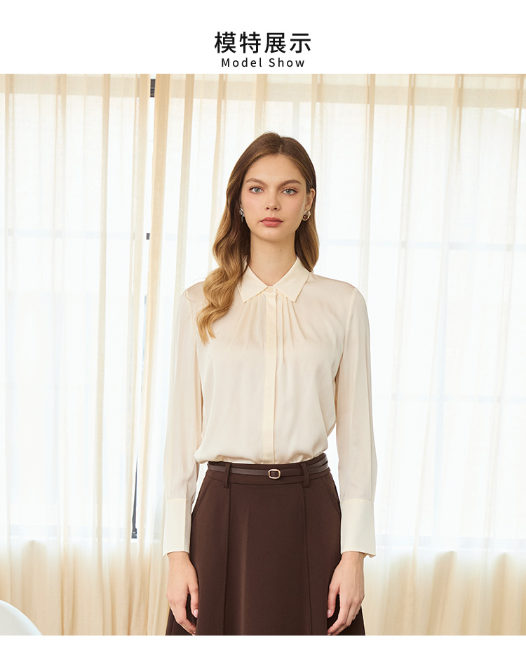 VIVIAN LIU TD2453003秋女装新款桑蚕丝小翻领领口捏褶底摆衬衫