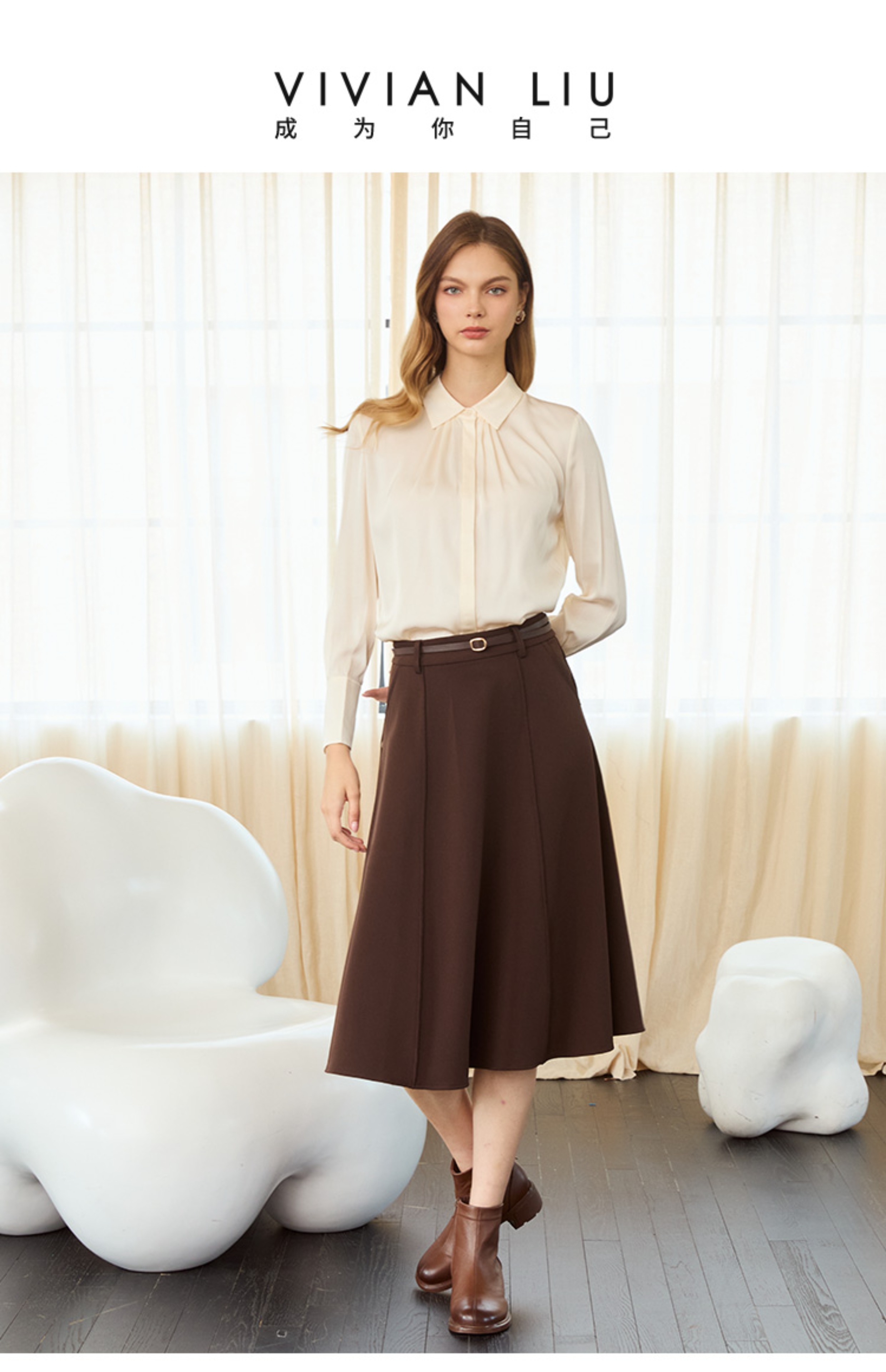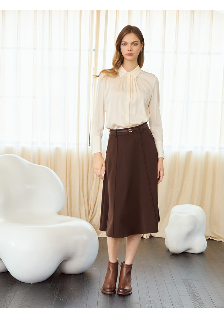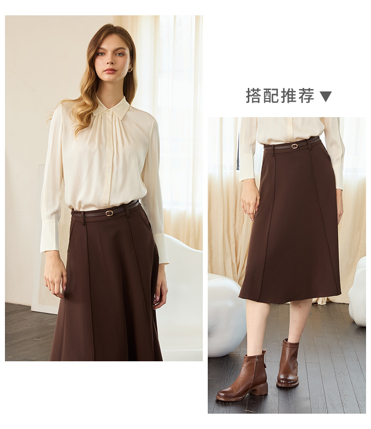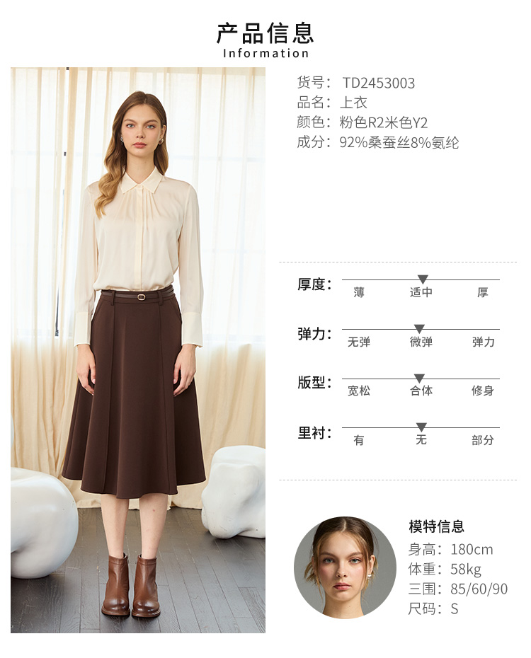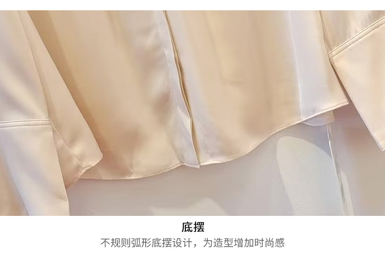 VIVIAN LIU TD2453003秋女装新款桑蚕丝小翻领领口捏褶底摆衬衫