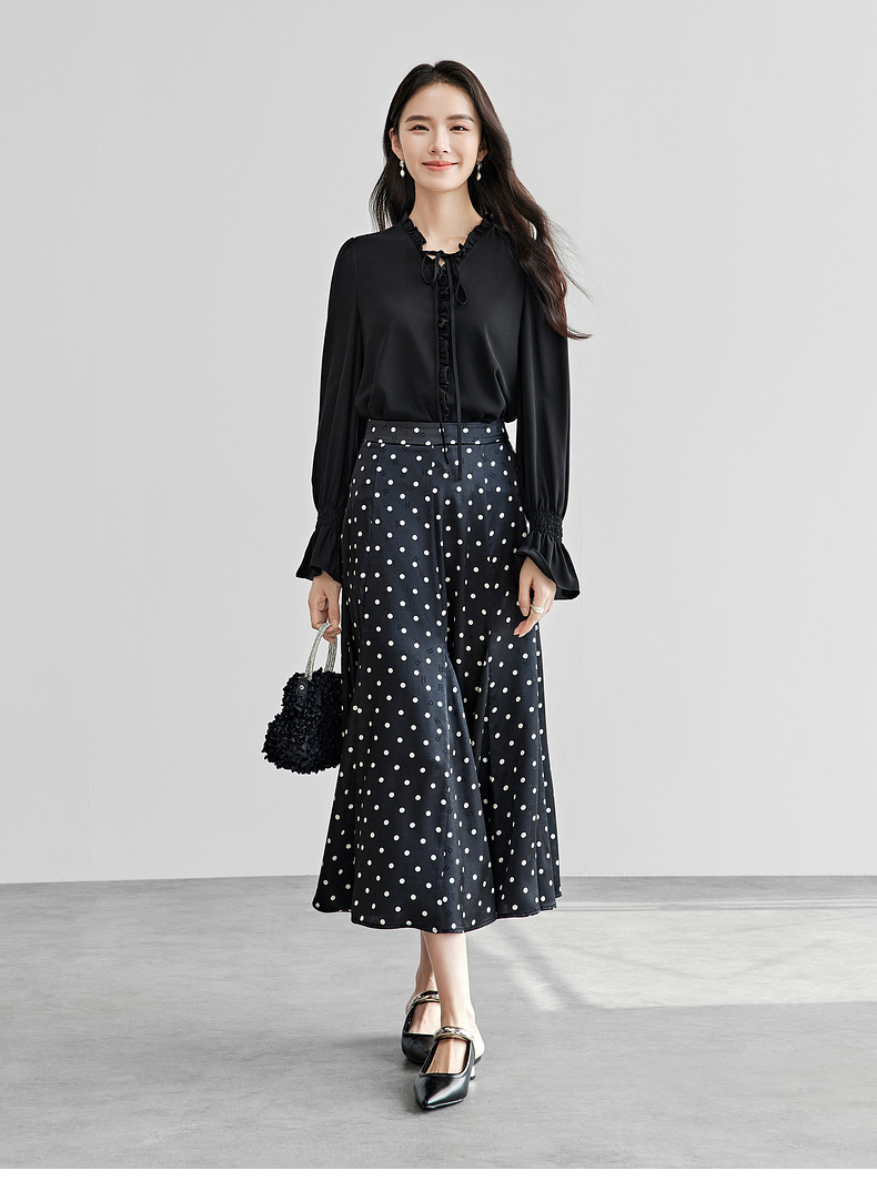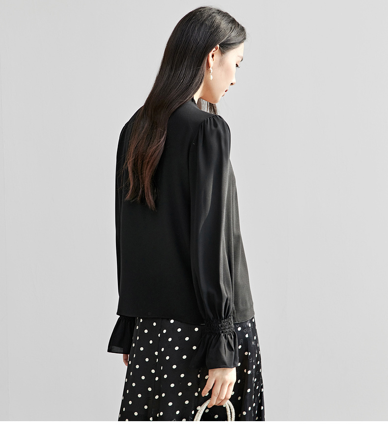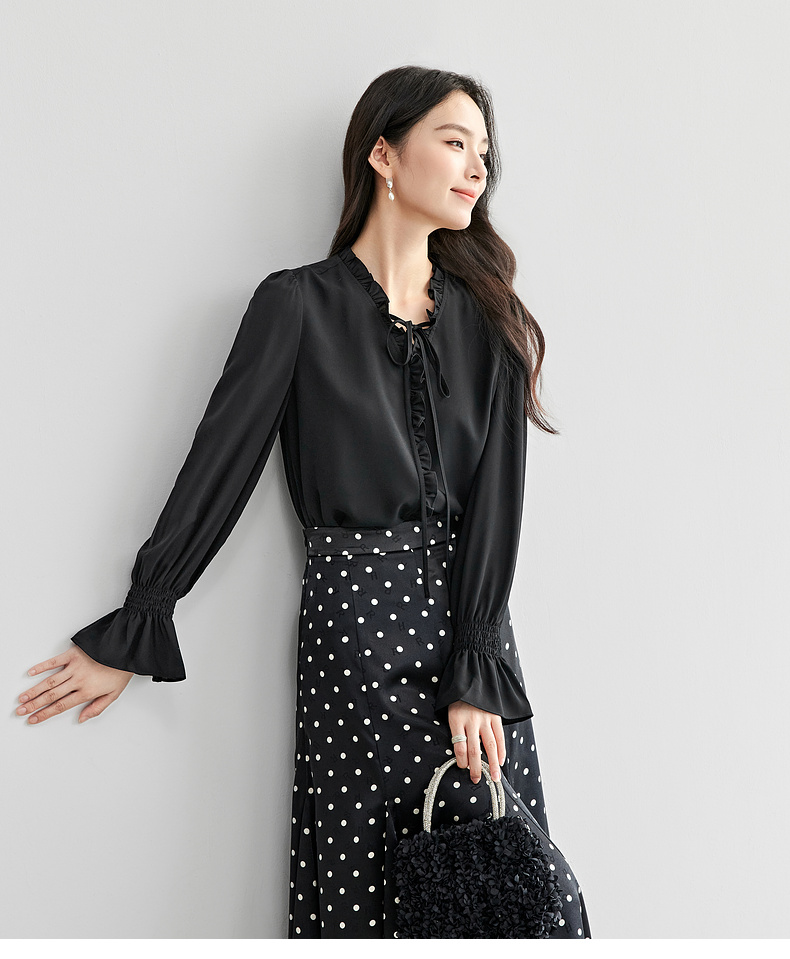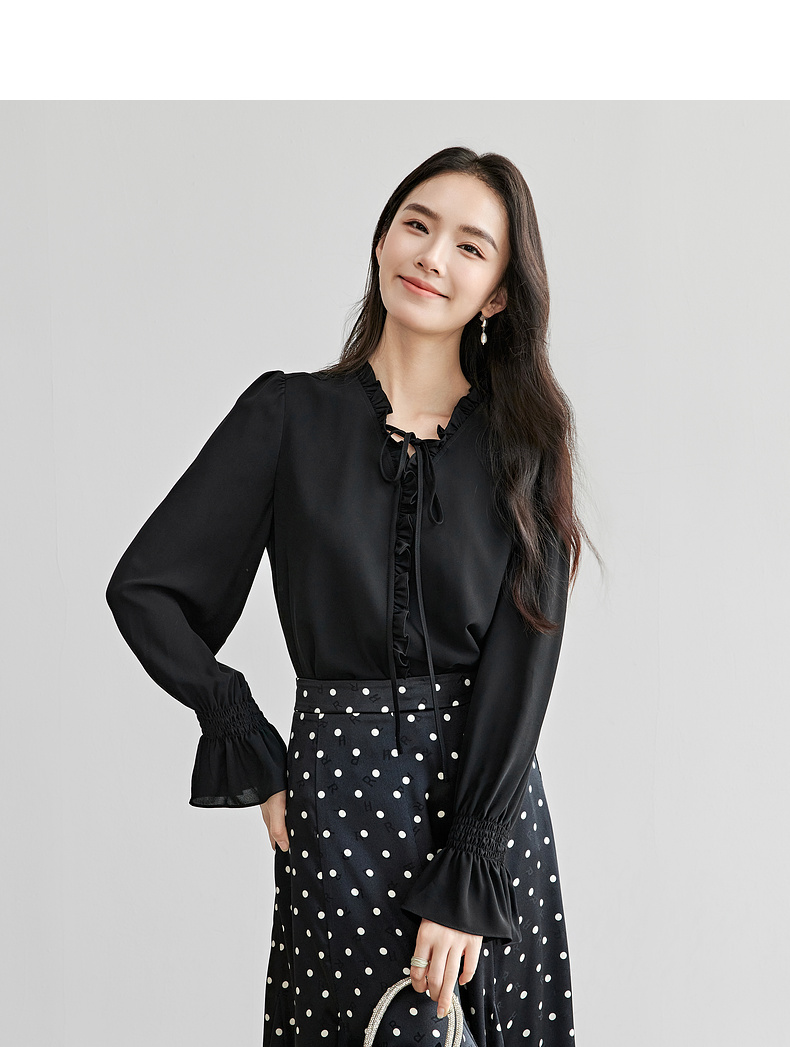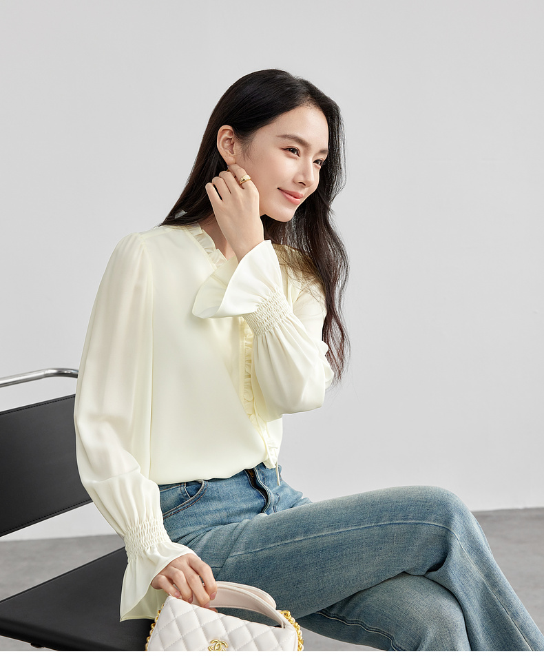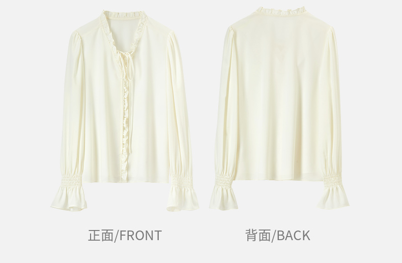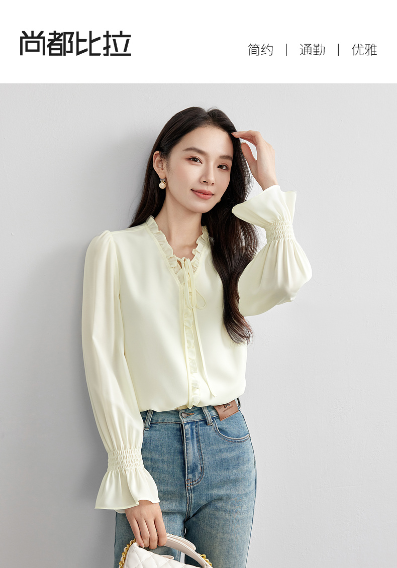 【内购】法式木耳边V领梭织乱麻轻盈雪纺衫通勤荷叶边V领直身廓形衬衣-57909