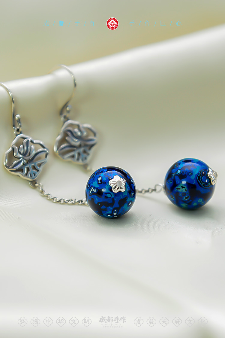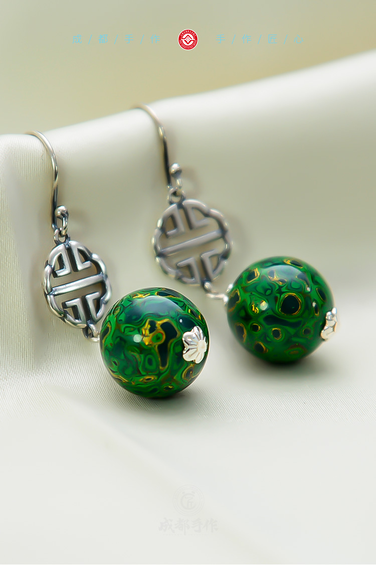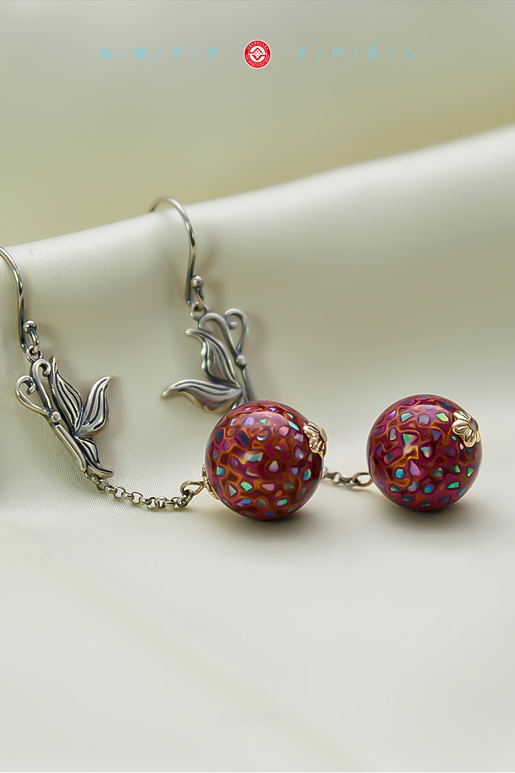 成都手作大漆老银耳环 非物质文化遗产漆艺 民族风耳饰耳链配饰
