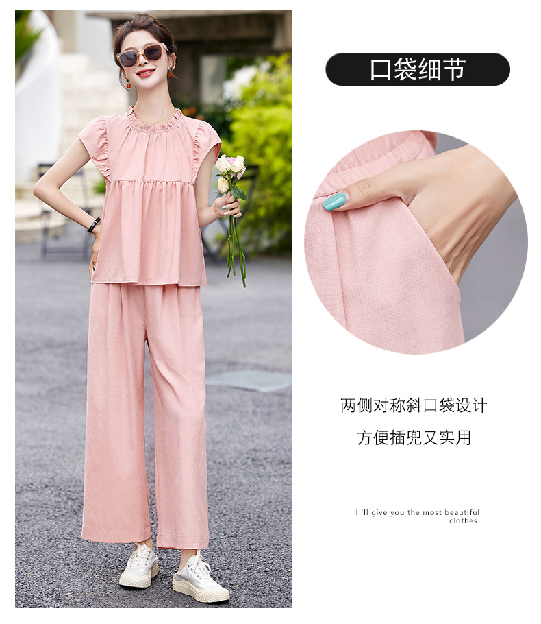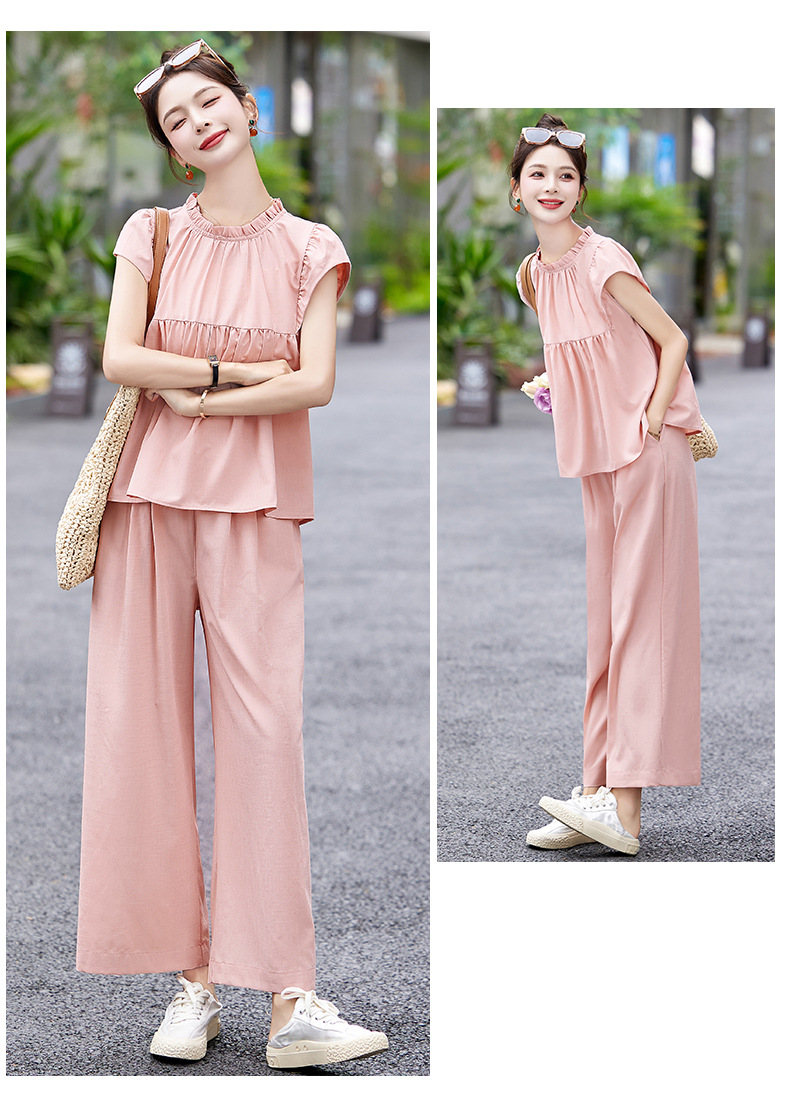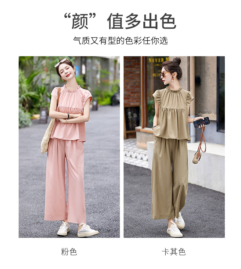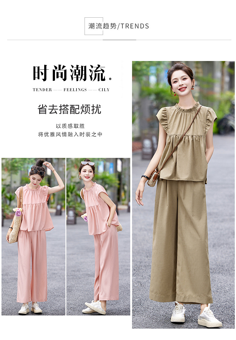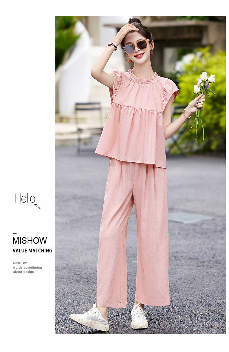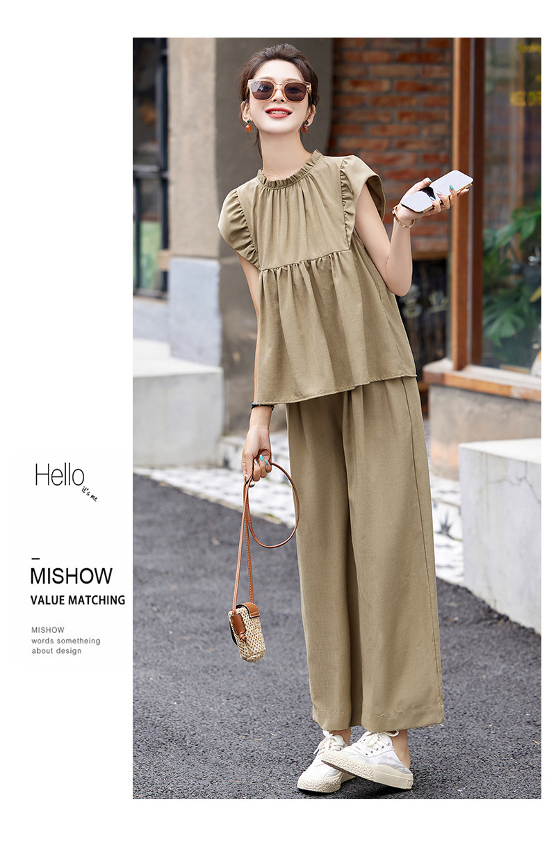慵懒风休闲气质阔腿裤套装,小立领短袖衫两件套HR-MY9926