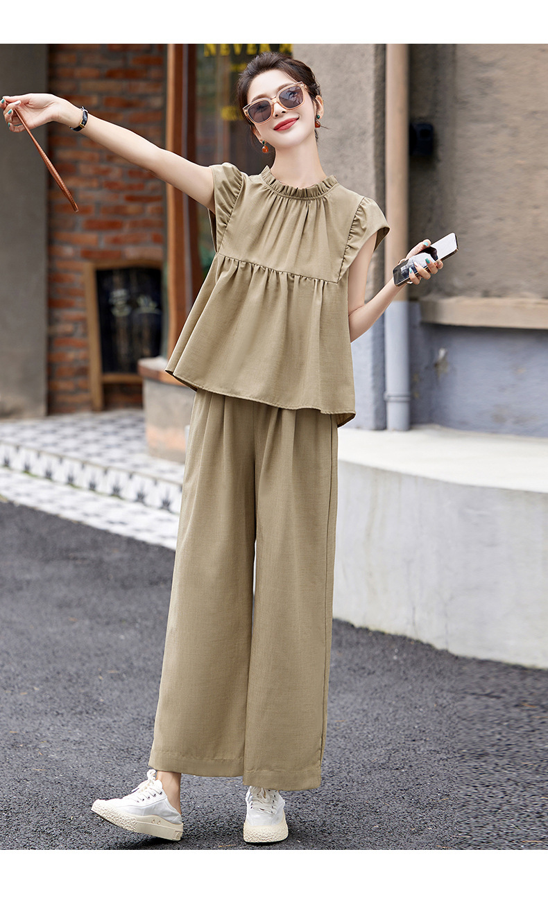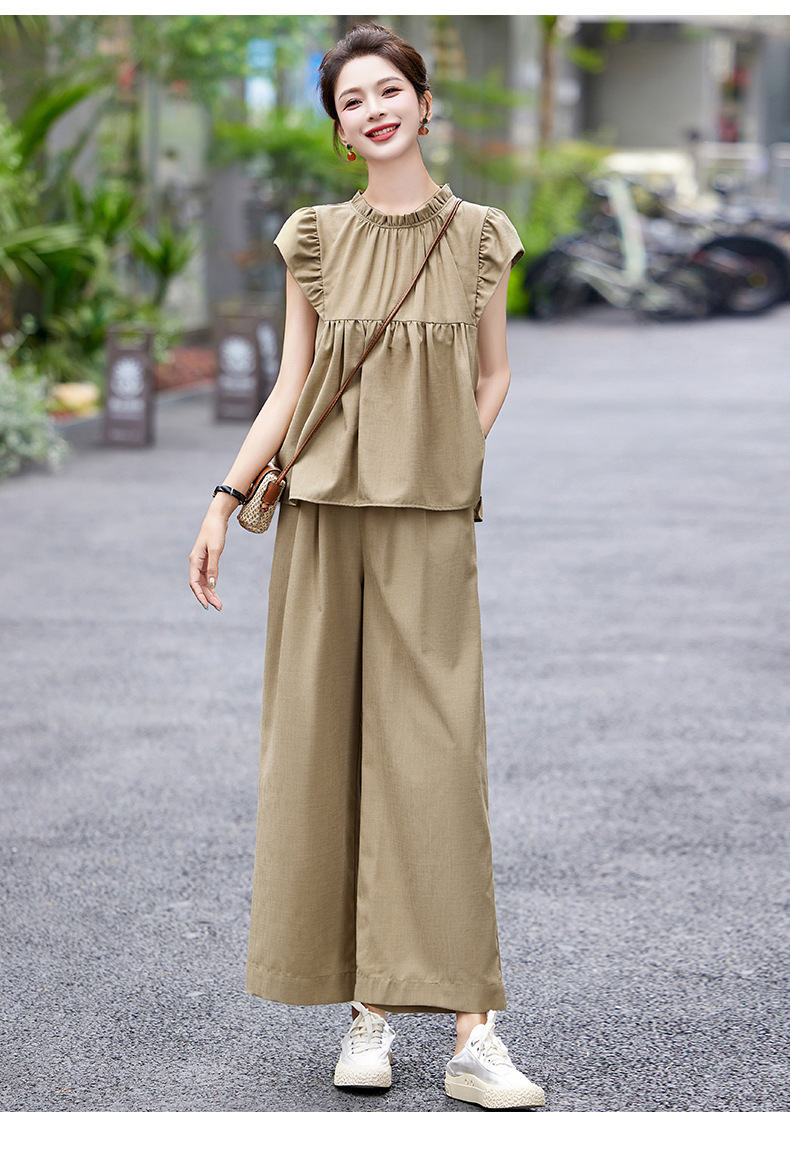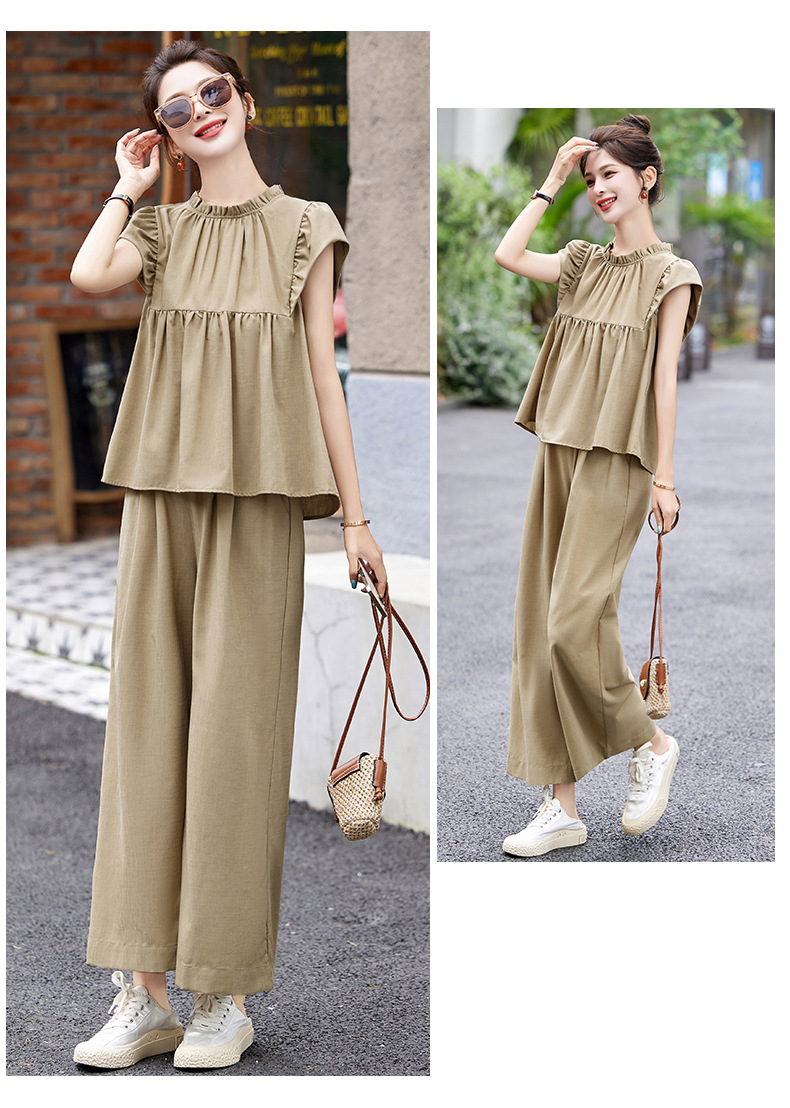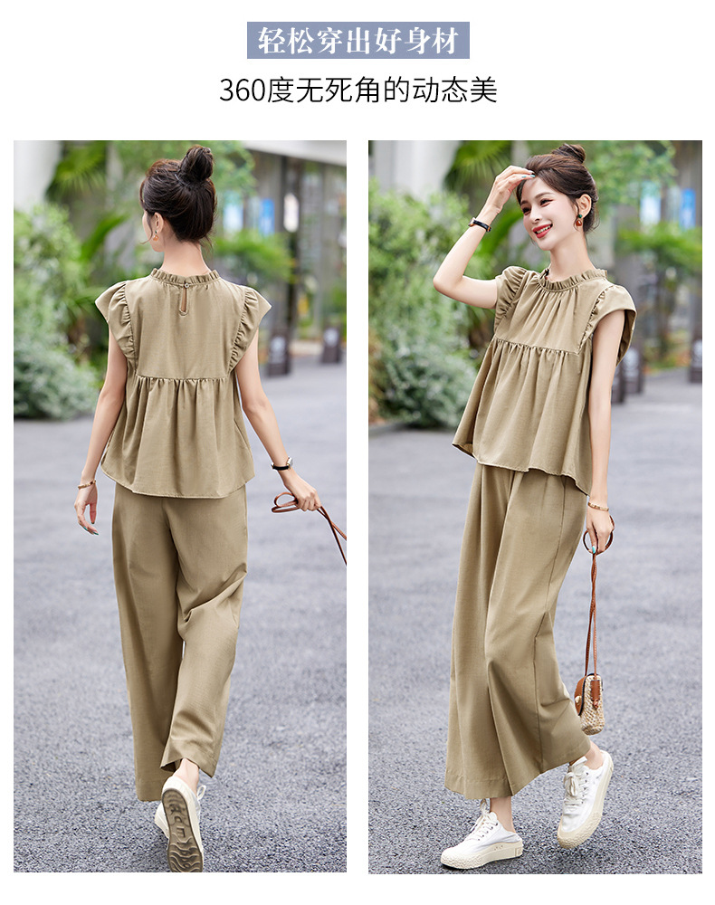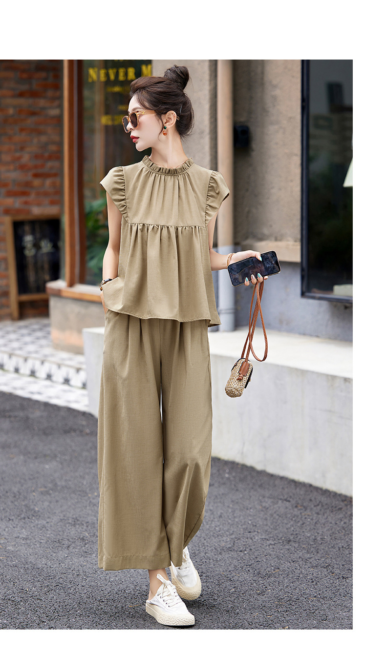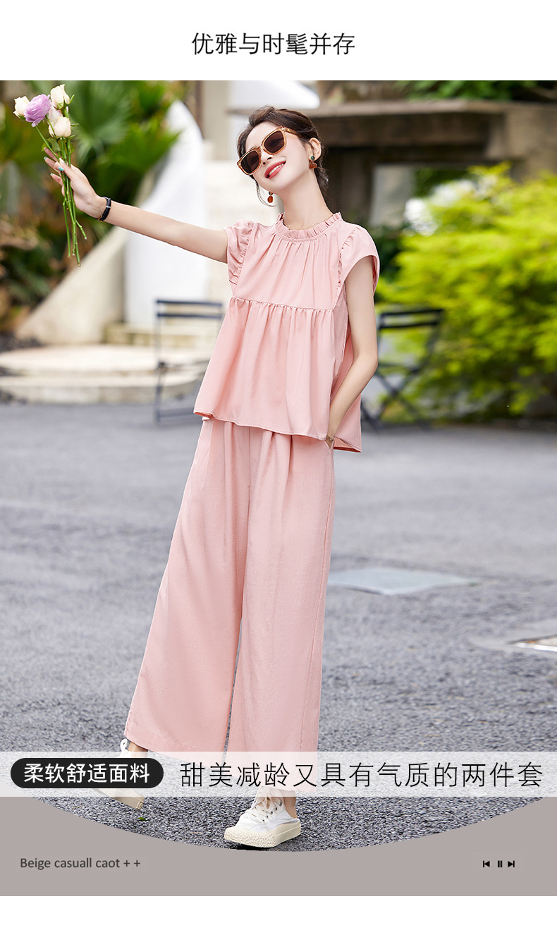 慵懒风休闲气质阔腿裤套装,小立领短袖衫两件套HR-MY9926