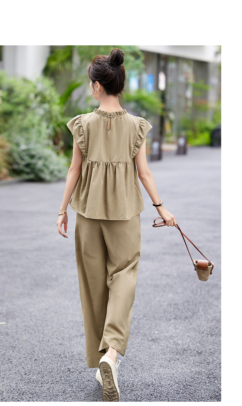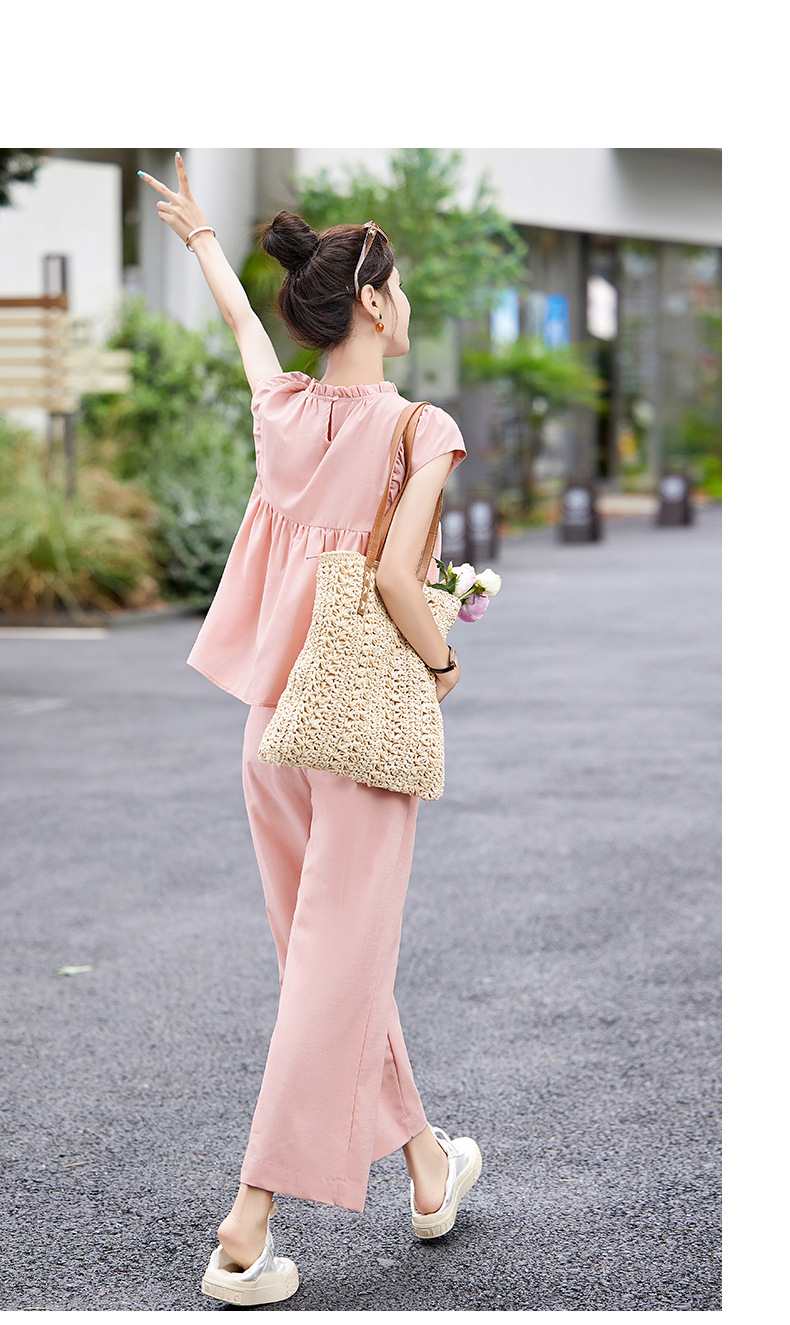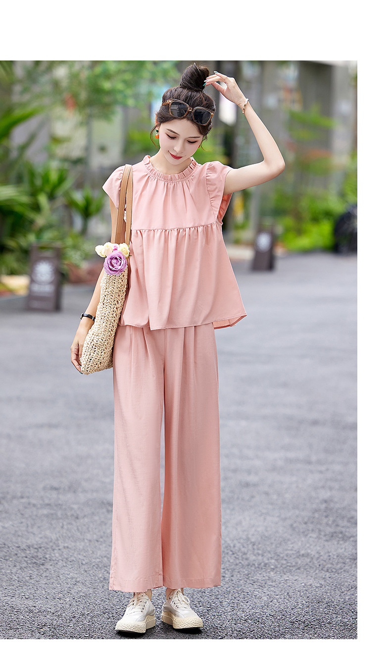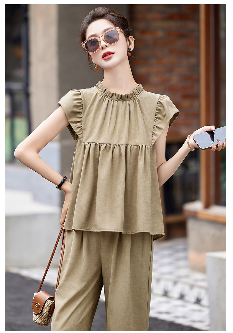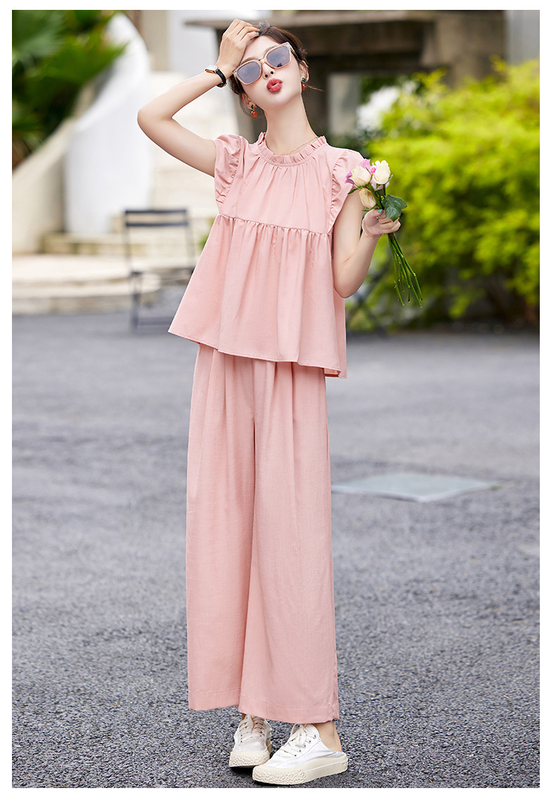慵懒风休闲气质阔腿裤套装,小立领短袖衫两件套HR-MY9926