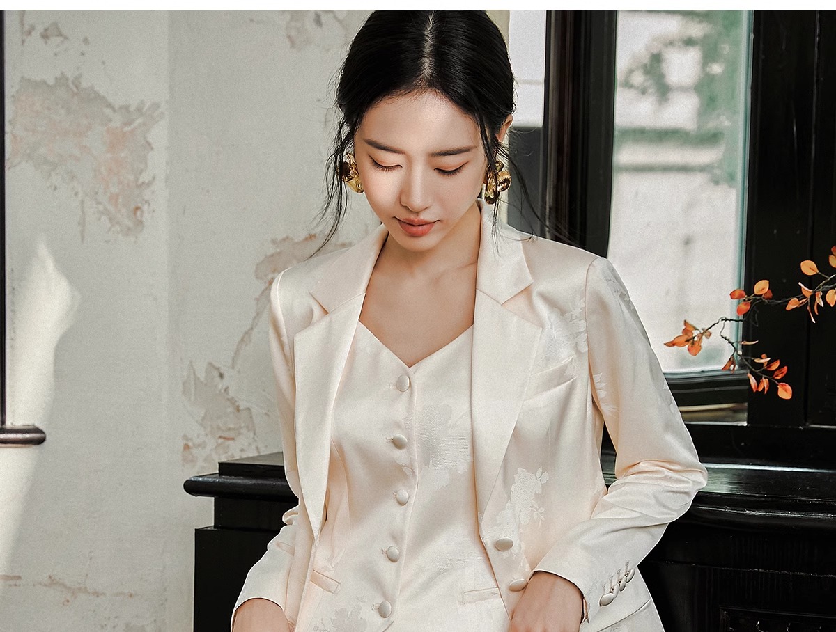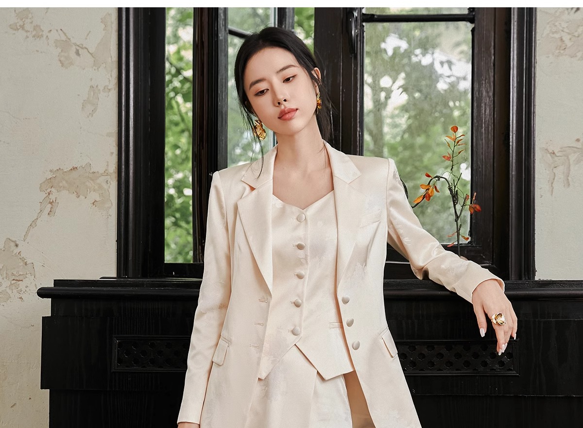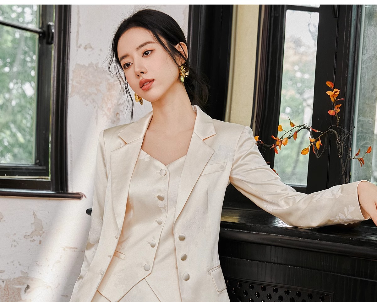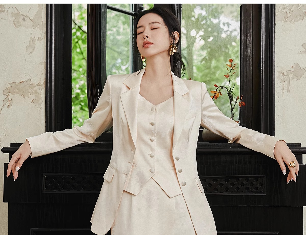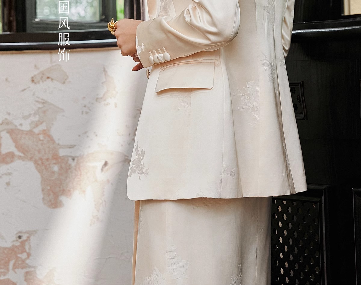 IWY/扶摇系列 缎面提花西服外套早秋新款高端通勤新中式国风休闲西装24FYCS529