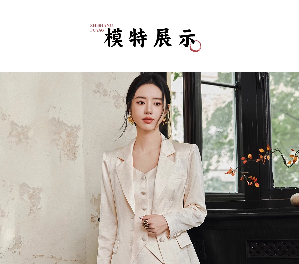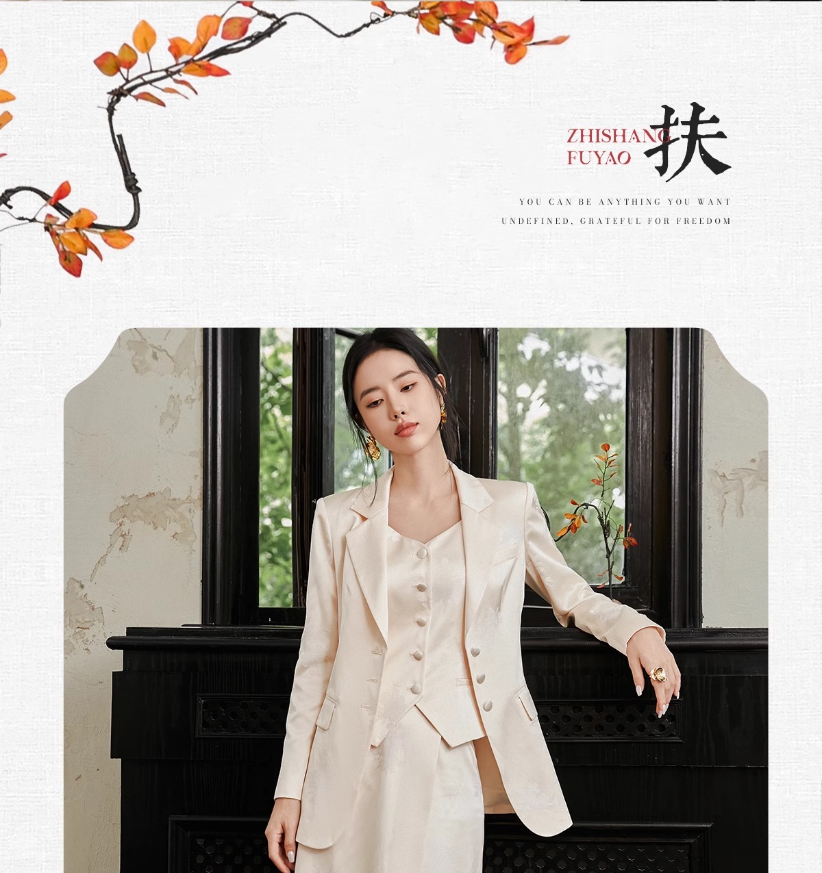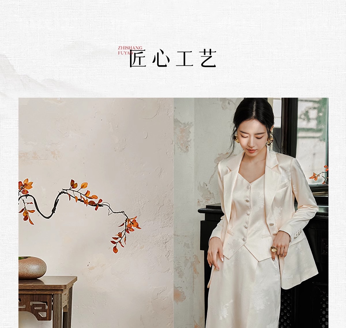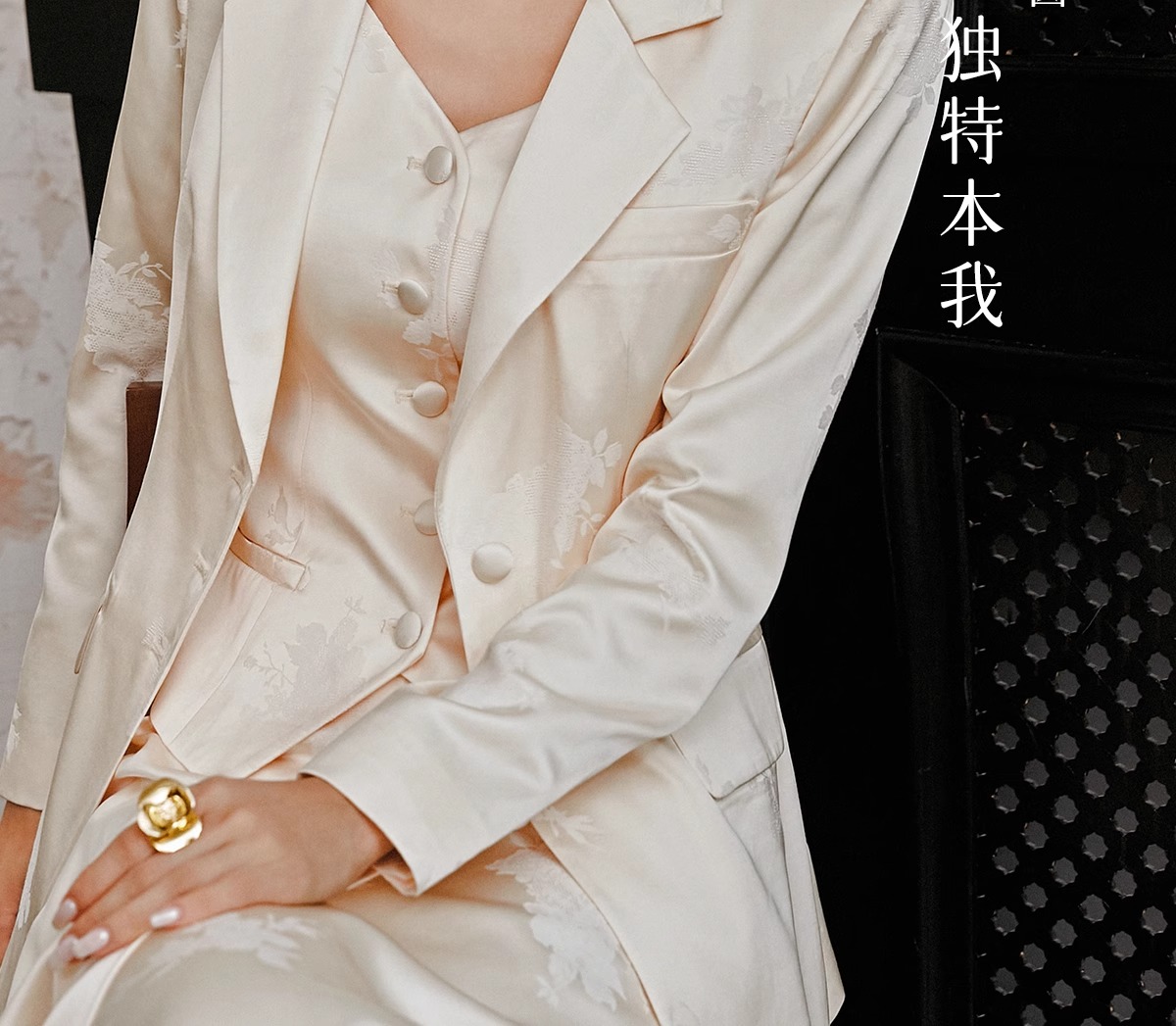 IWY/扶摇系列 缎面提花西服外套早秋新款高端通勤新中式国风休闲西装24FYCS529