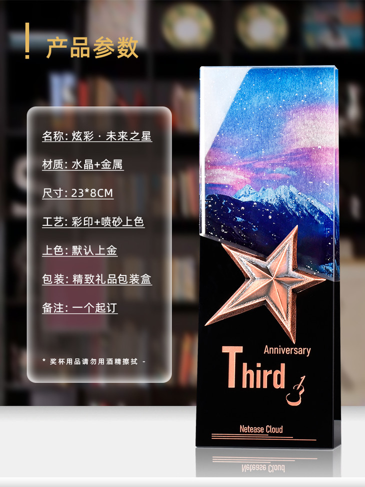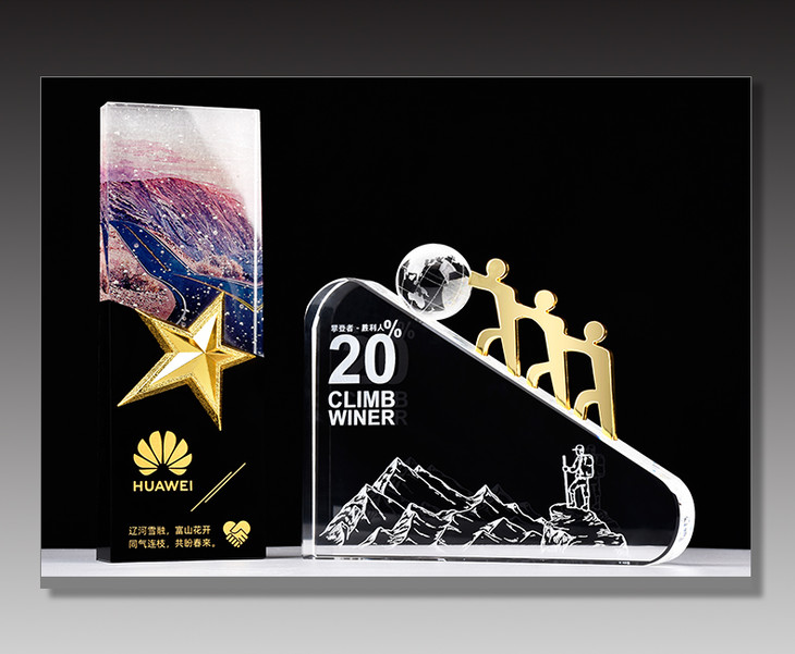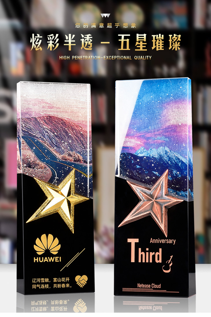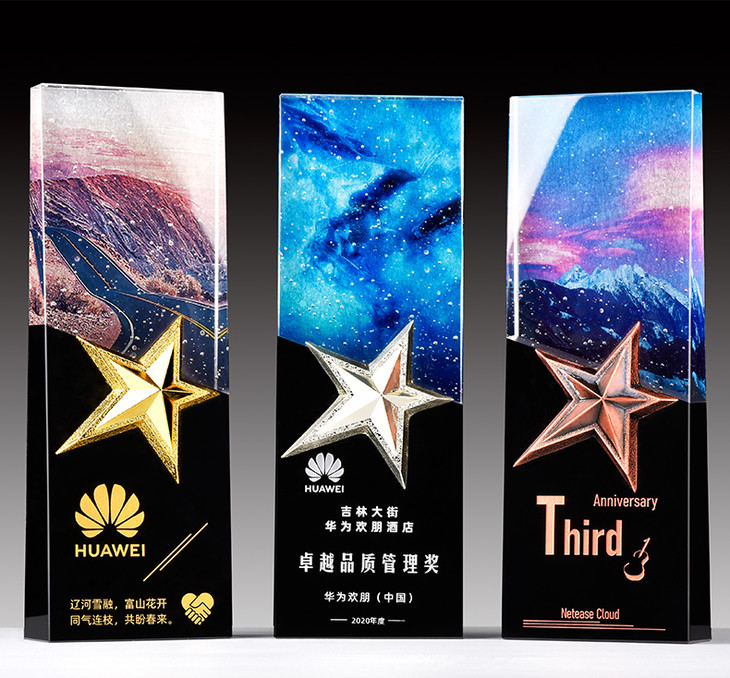 水晶奖杯五角星定制创意彩色雕刻纪念品定做优秀员工团队年会奖品