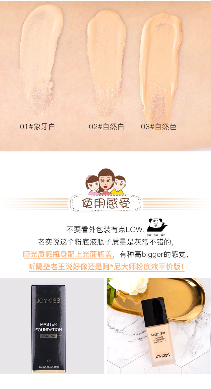 joykiss大师粉底液30ml 保湿遮瑕控油 裸妆持久不易脱妆 养肤bb霜 专为亚洲女性设计