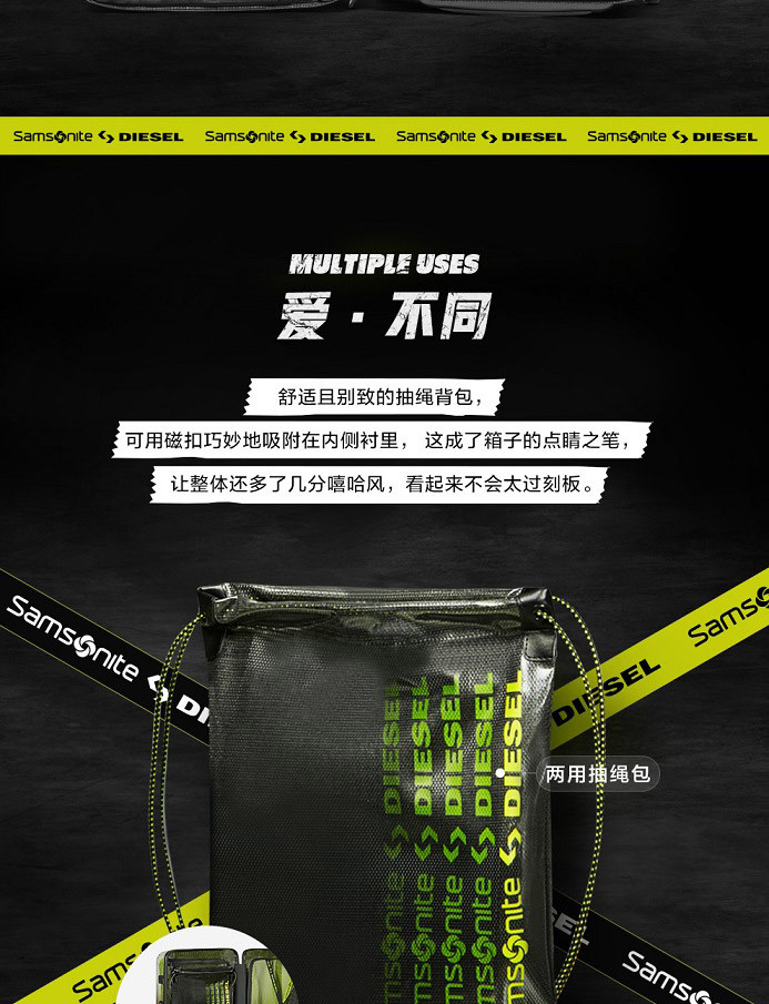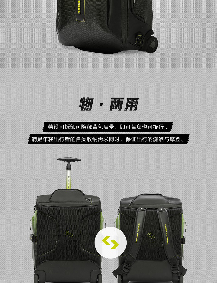 Samsonite X Diesel 联名合作,带拉杆双肩包,大容量收纳空间,摩登出行KA2*008