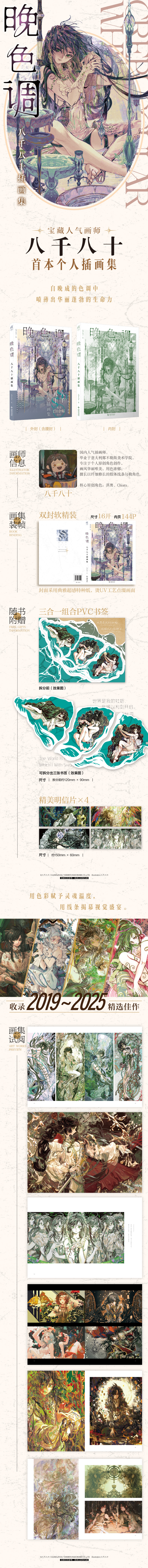 晚色调 : 八千八十插画集(随书附赠:PVC三合一书签×1,明信片×4)画集收录了未公开的插画师访谈后记,分享了插画师创作心路历程与创作心得。
