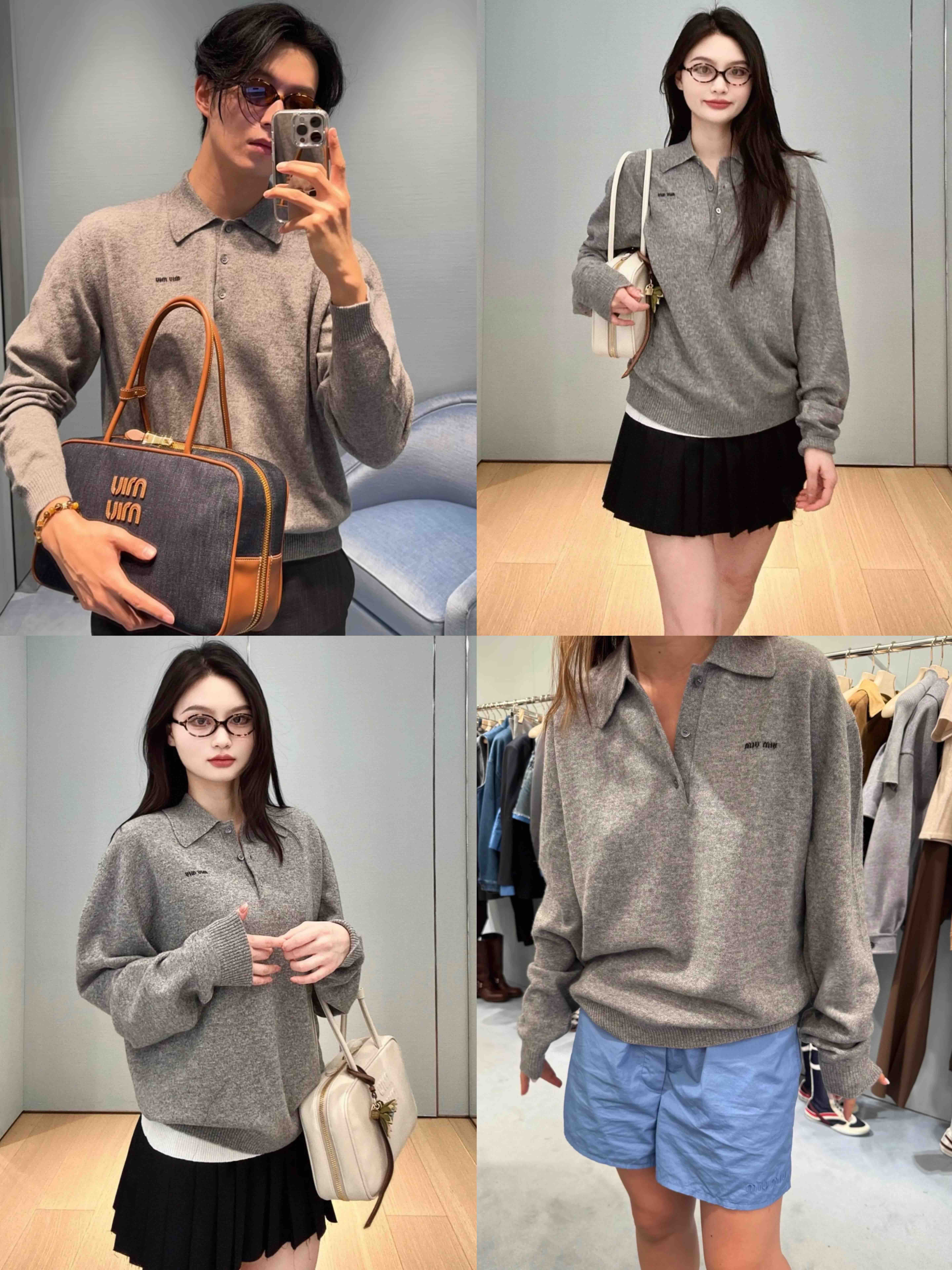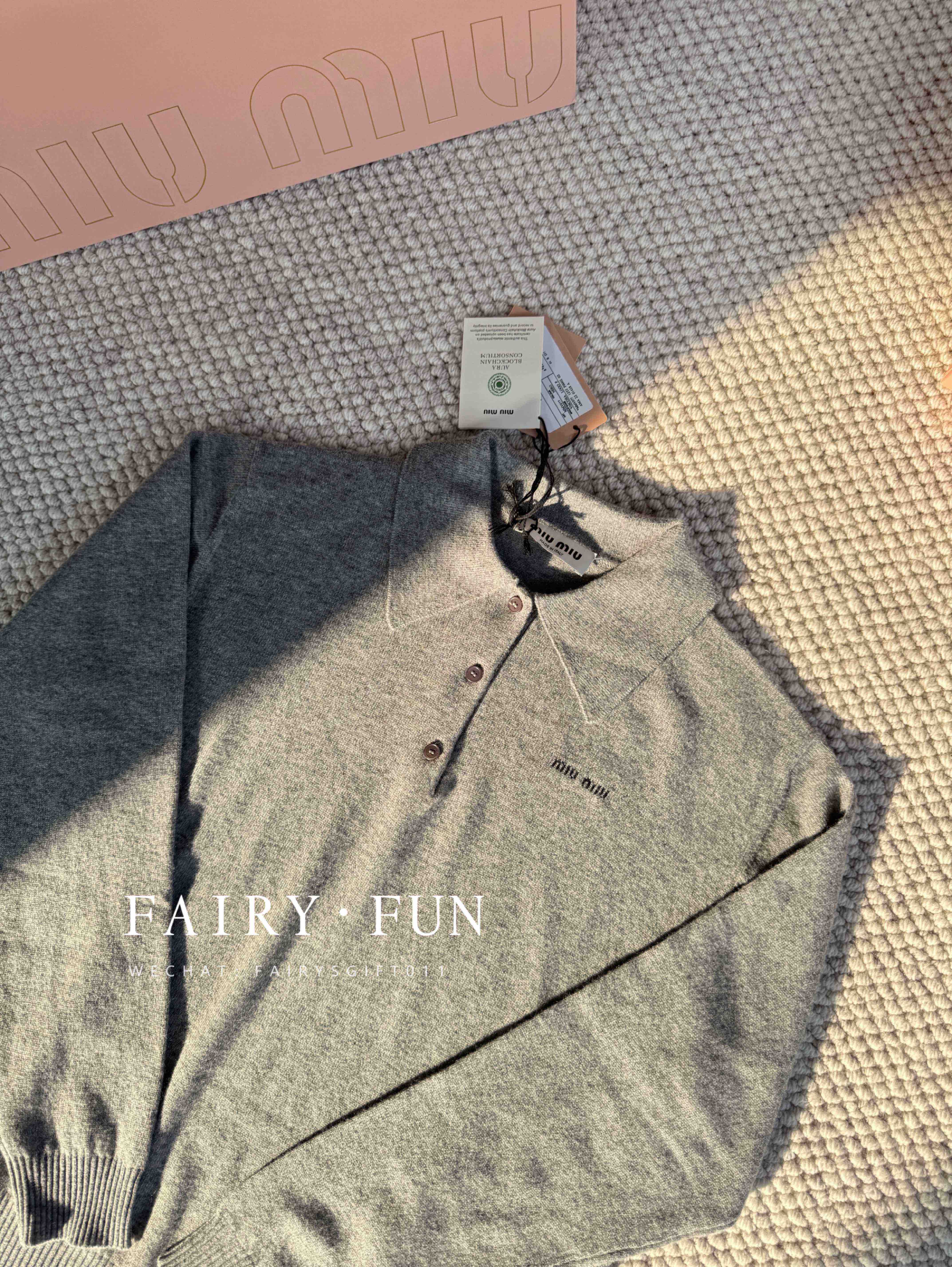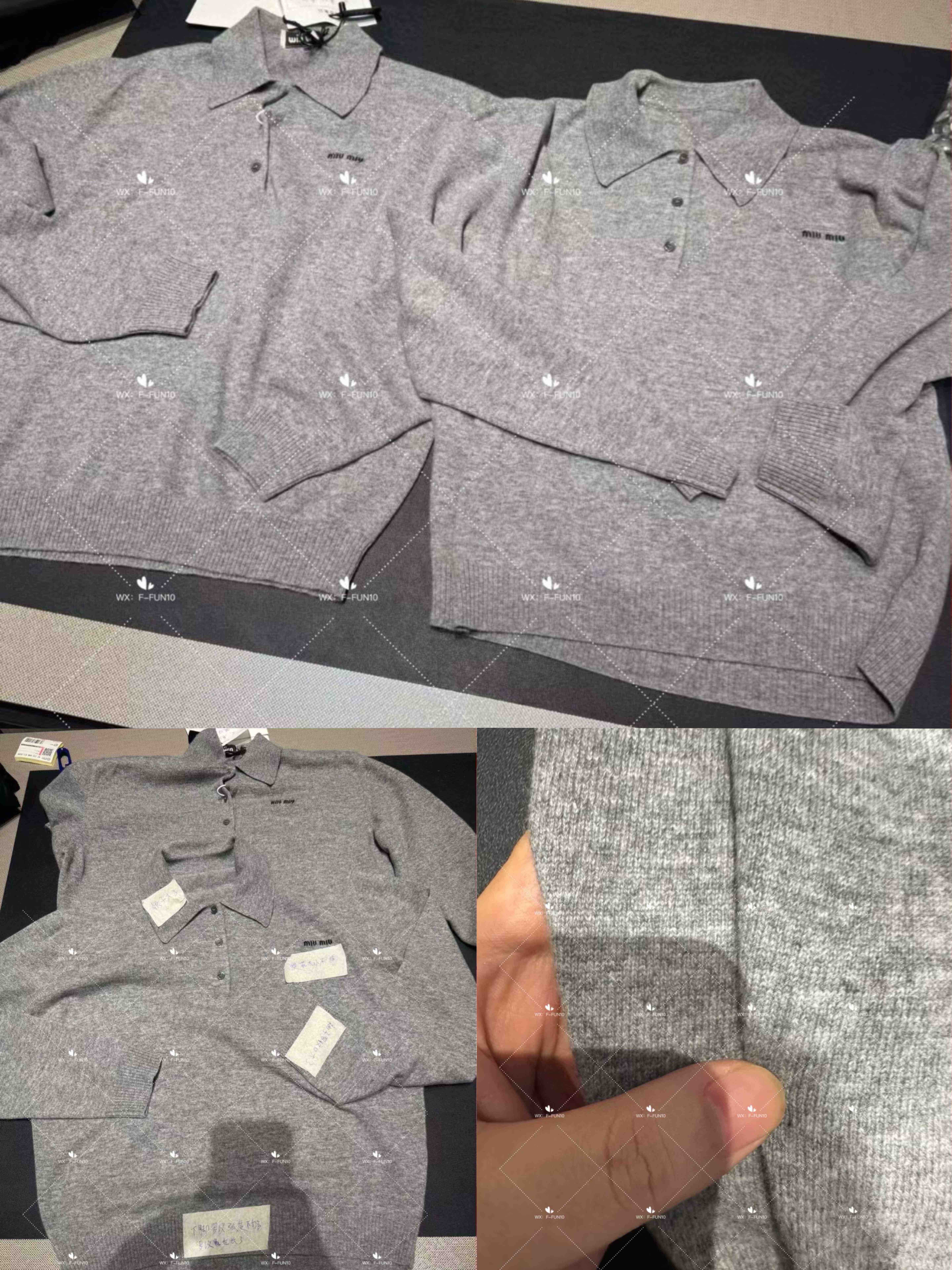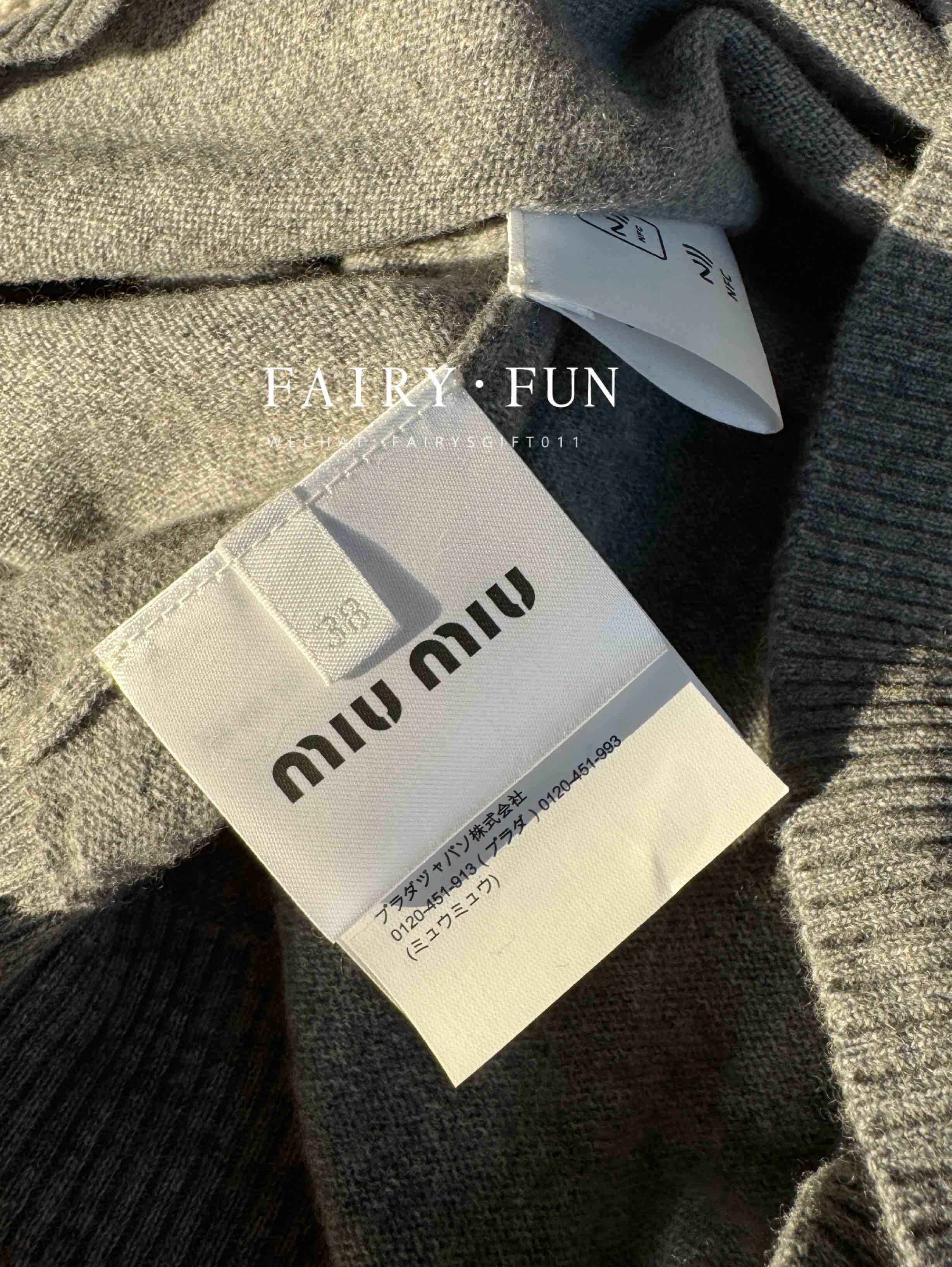 MIU-S 灰色羊绒Polo毛衣.