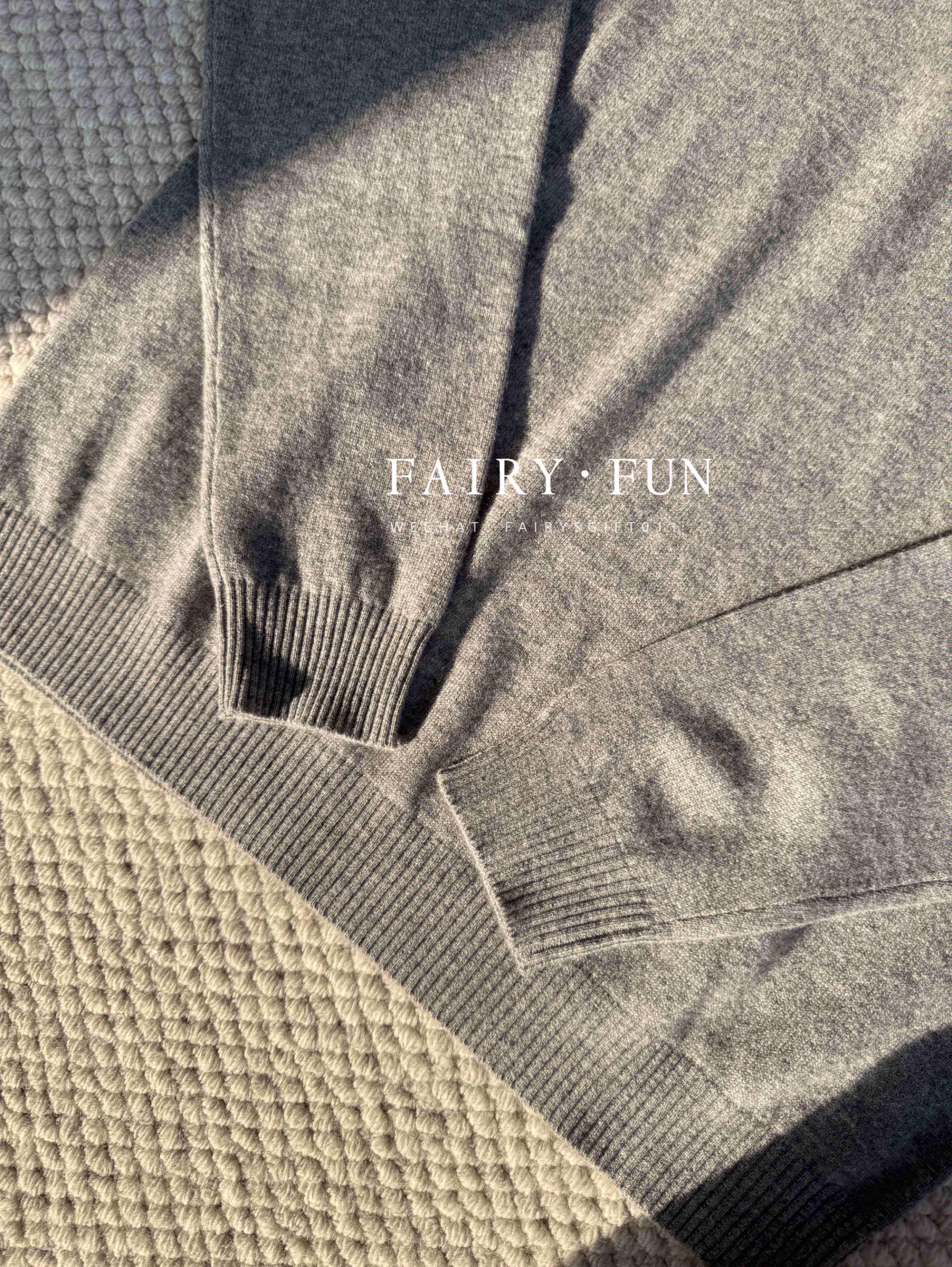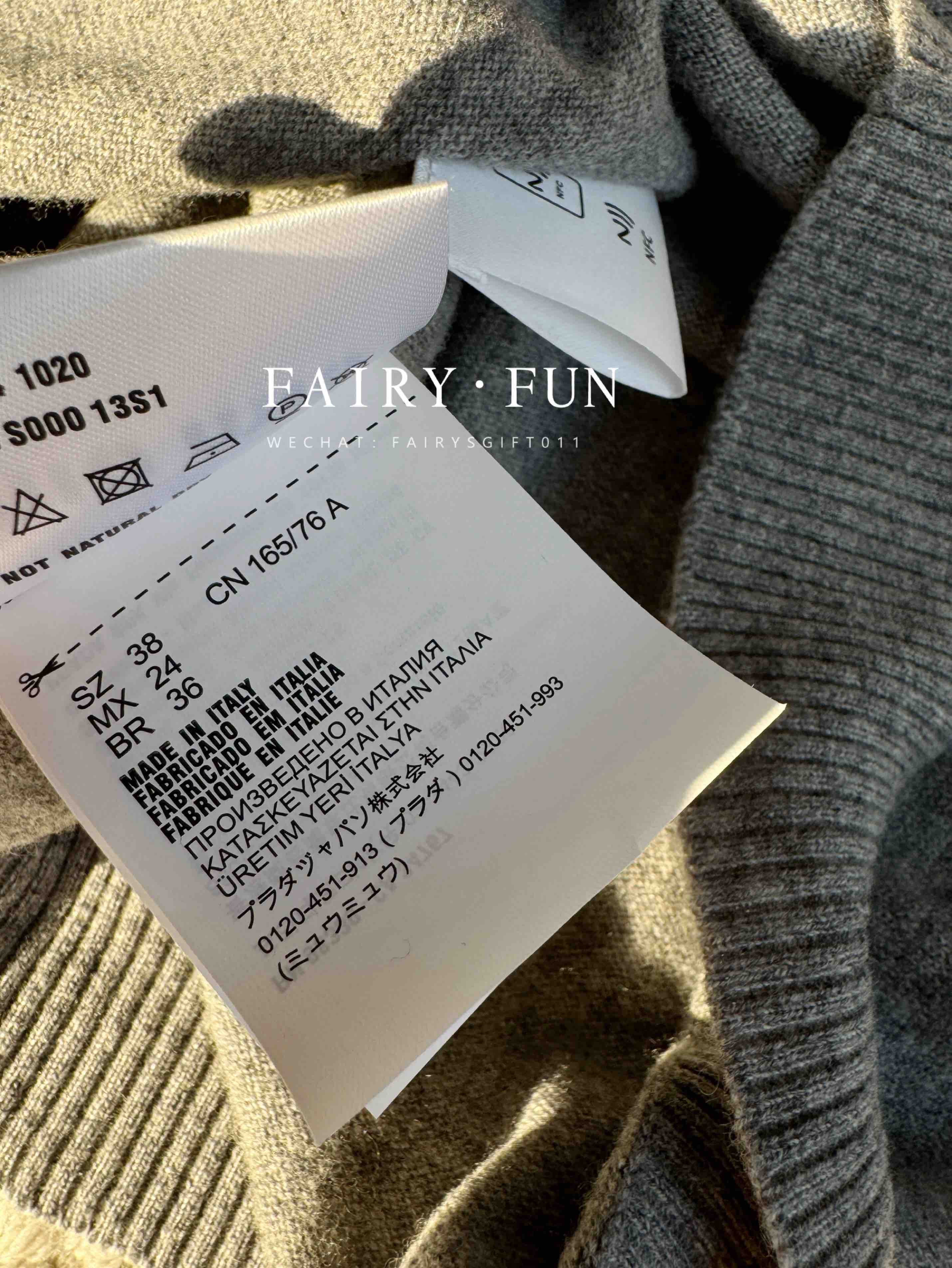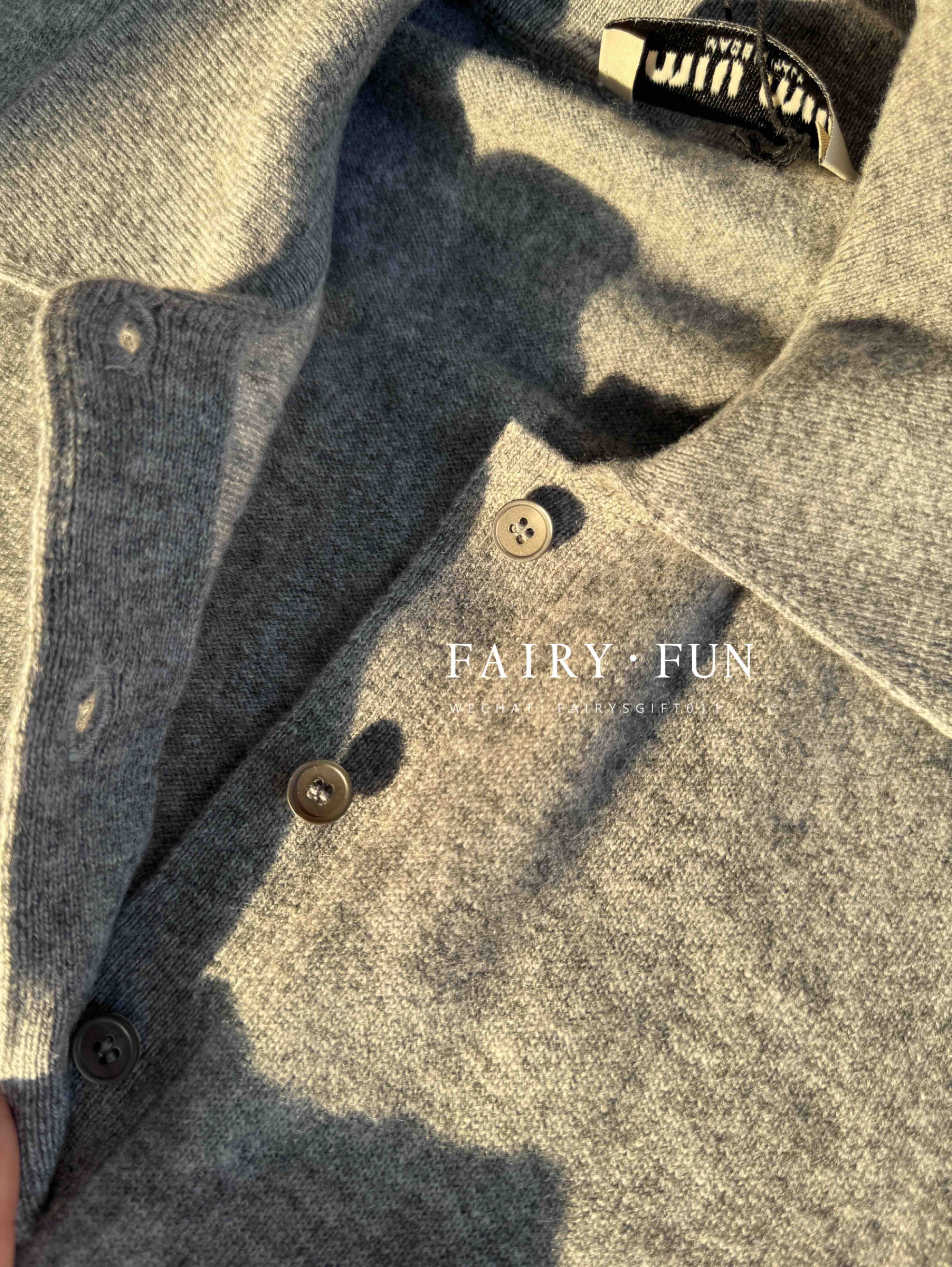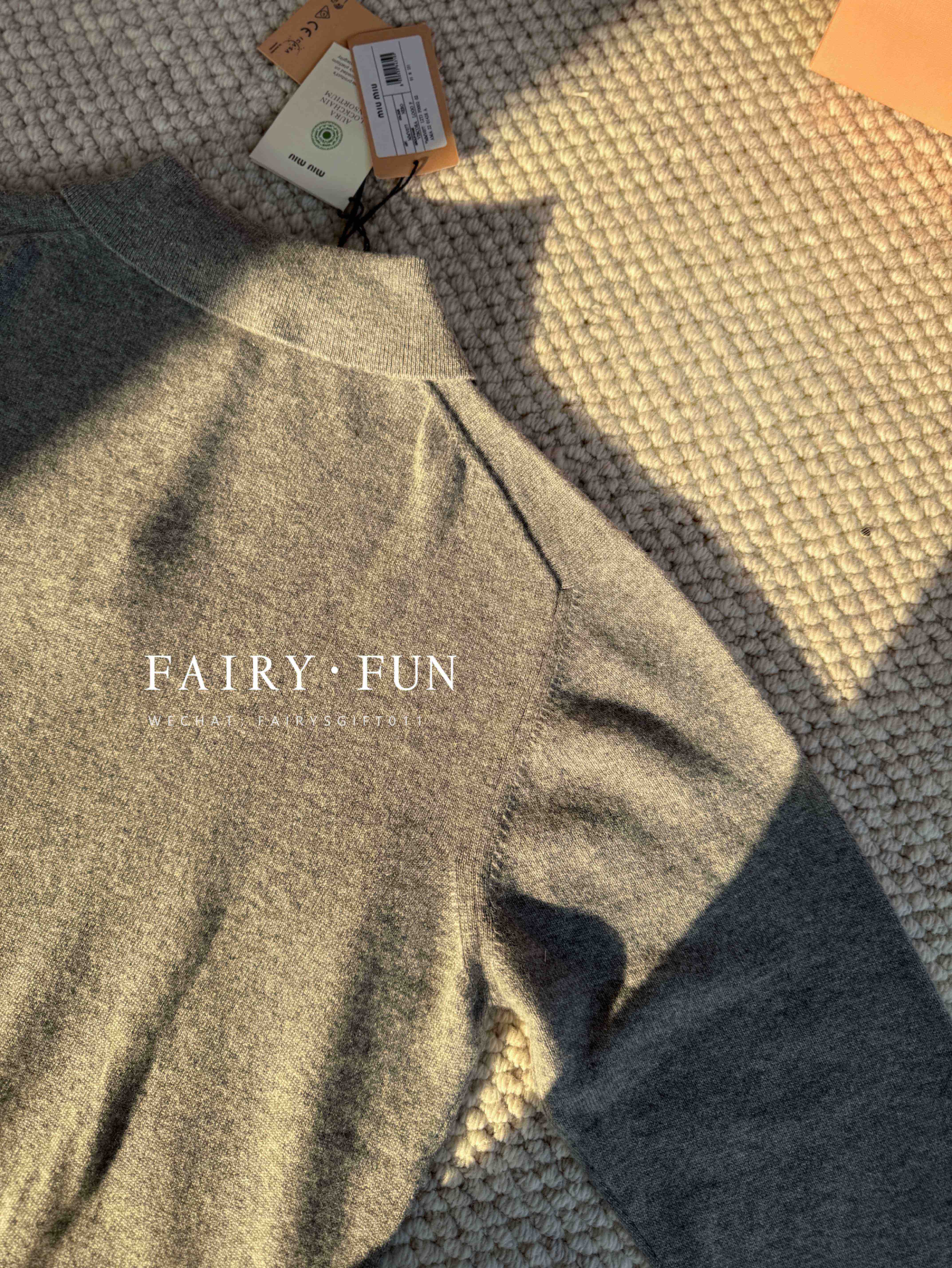MIU-S 灰色羊绒Polo毛衣.
