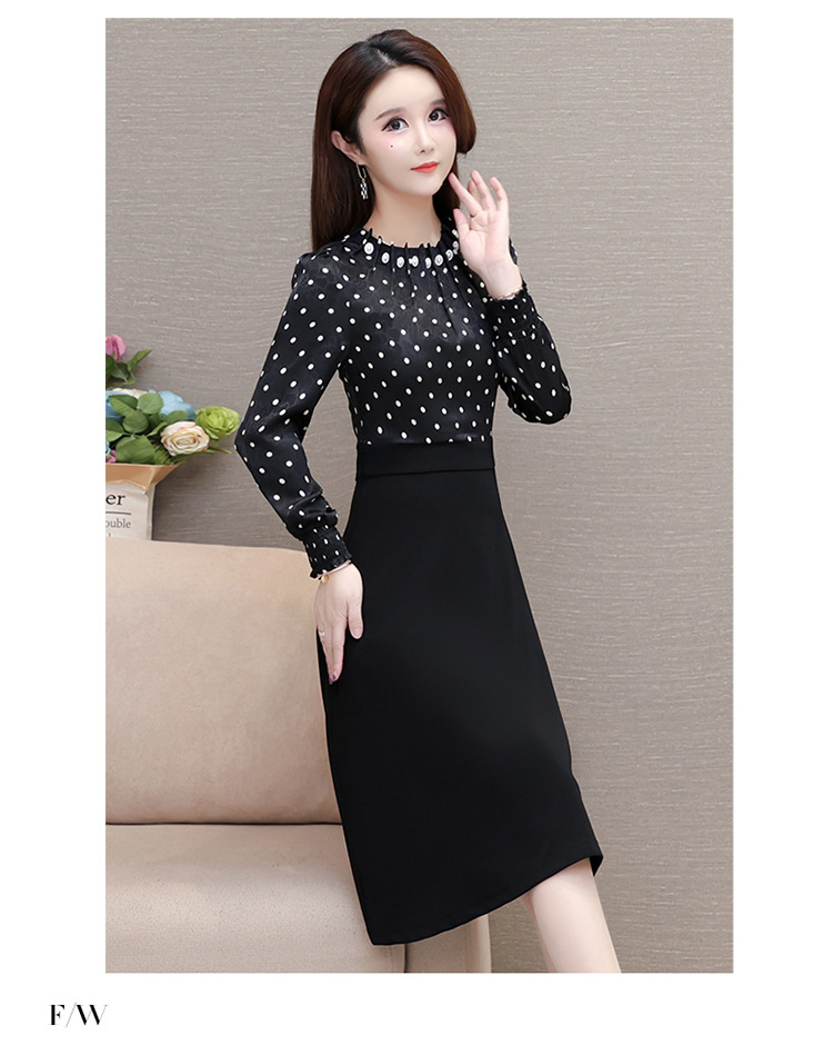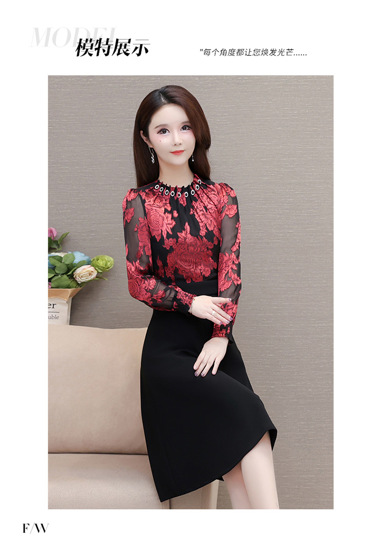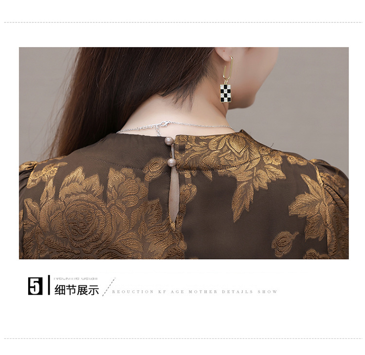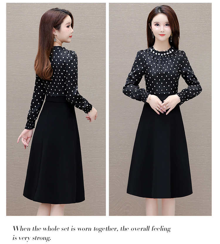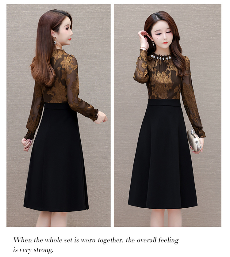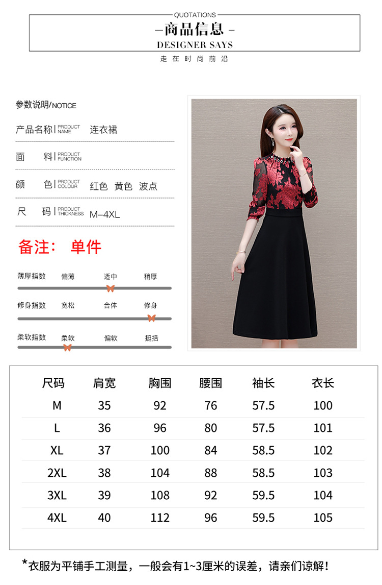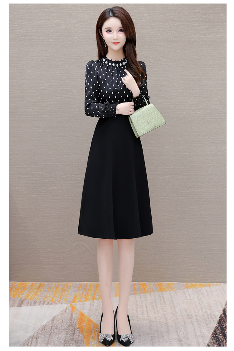 时尚气质,拼结假两件中年女装高腰长袖A字裙春装印花连衣裙QYM-XY-23DB76-Y