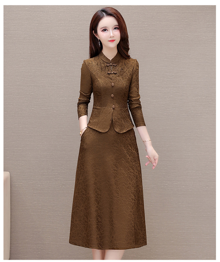 假两件中长裙,气质长袖连衣裙QYM-KED-H1681-Y