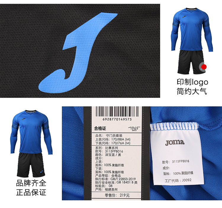 小李子:正品JOMA/霍马足球训练比赛守门员成人套装男3115FPB016