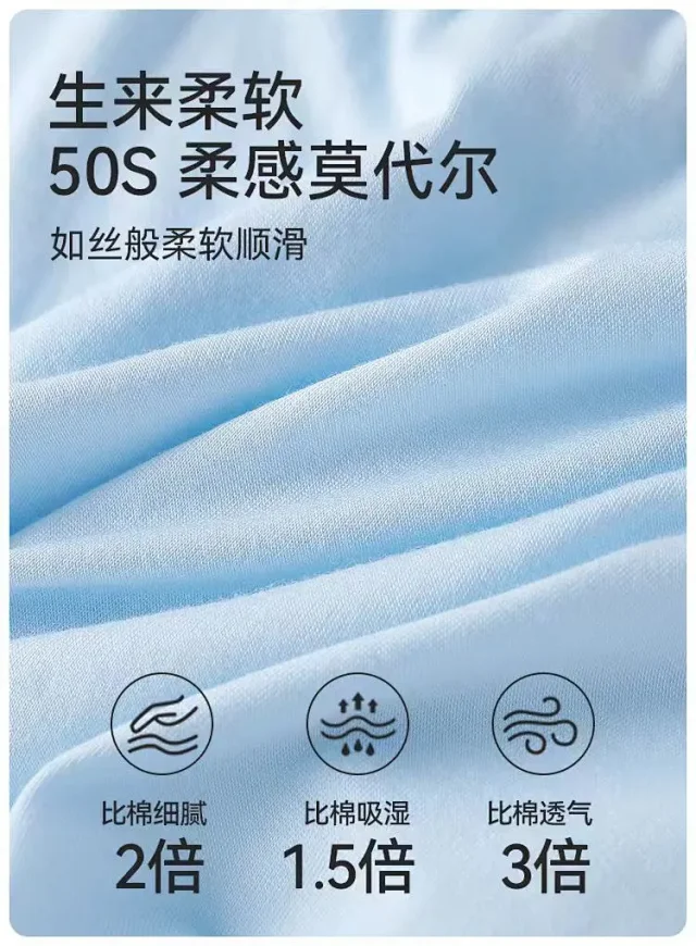 进口兰精莫代尔+氨纶的面料,底档是100%纯棉,能快速吸湿排汗