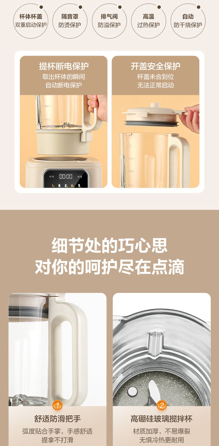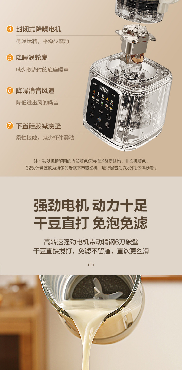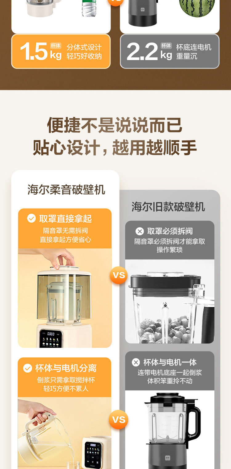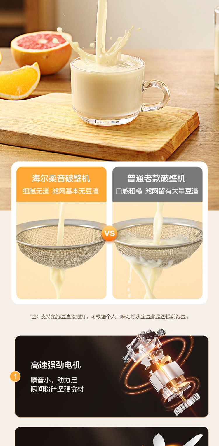 海尔(Haier)破壁机 0.9L多功能柔音降噪多档预约加热无渣豆浆机 全自动热风杀菌 榨汁机料理机HPB-D01