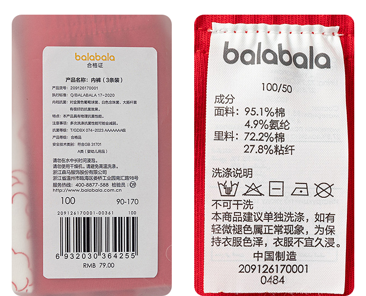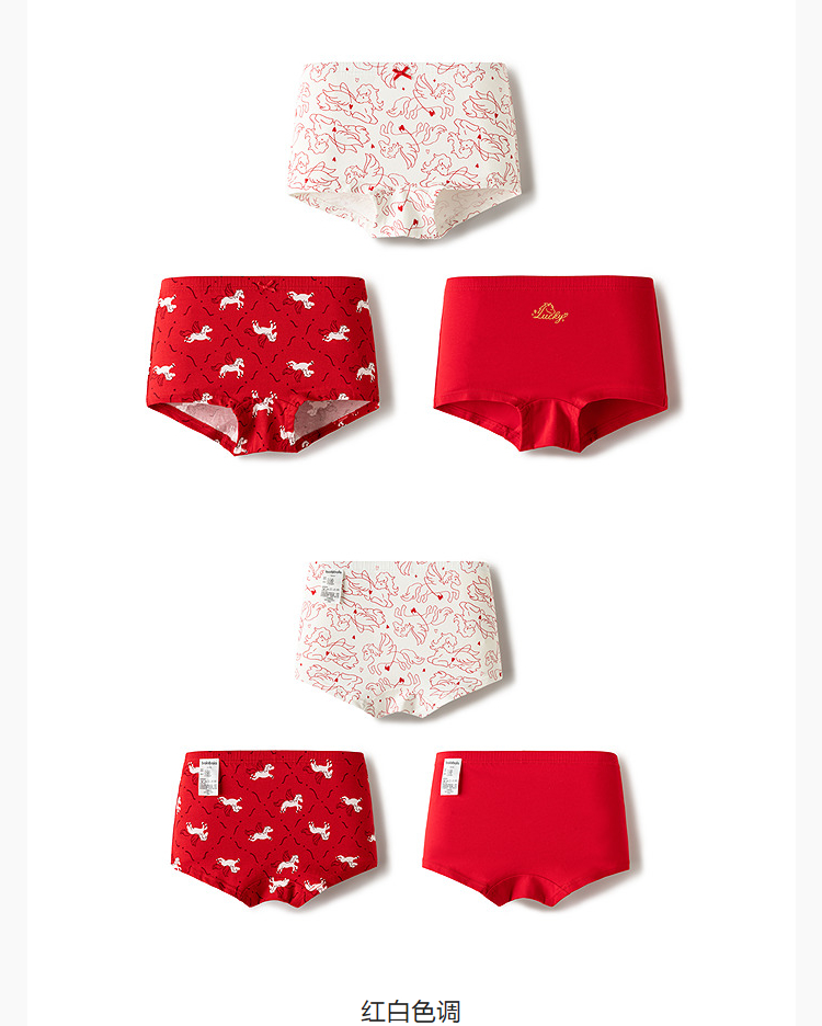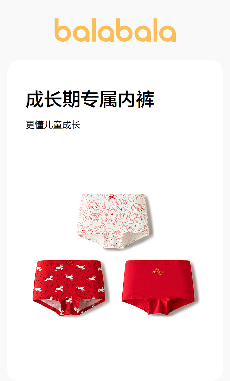 【balaOne】巴拉巴拉儿童内裤女童不夹pp抗菌裆四角裤亲肤三条装