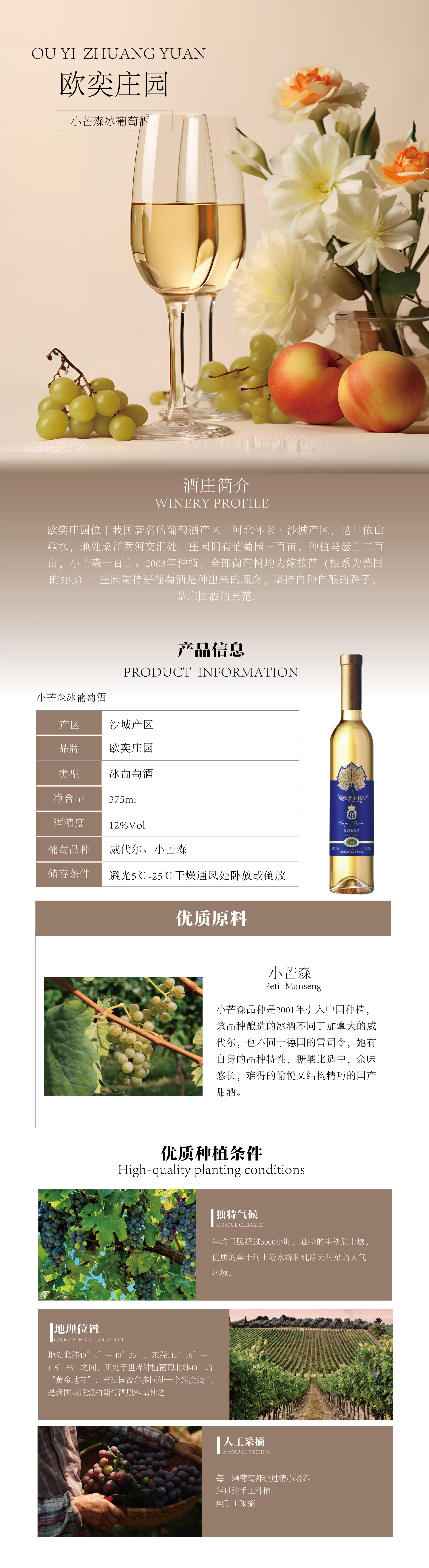欧奕庄园小芒森冰晶葡萄酒 净含量375ml 酒精度12%vol 冰葡萄酒 低温发酵