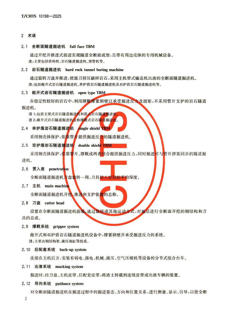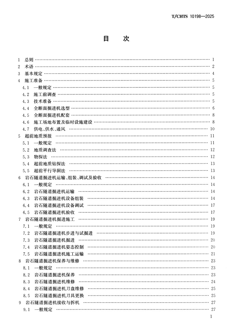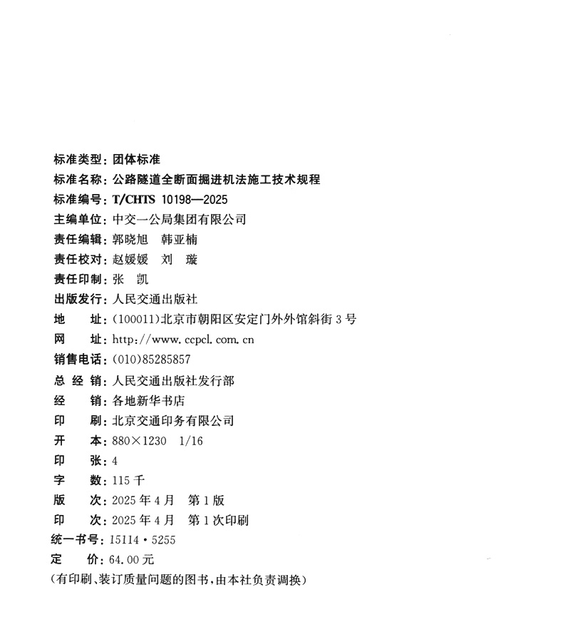书名:公路隧道全断面掘进机法施工技术规程(T/CHTS 10198—2025)