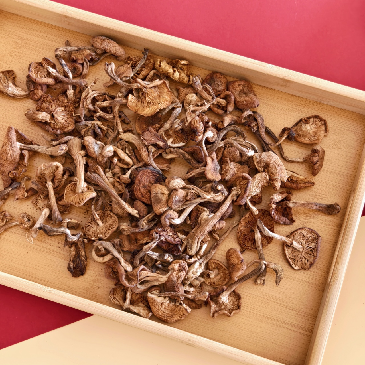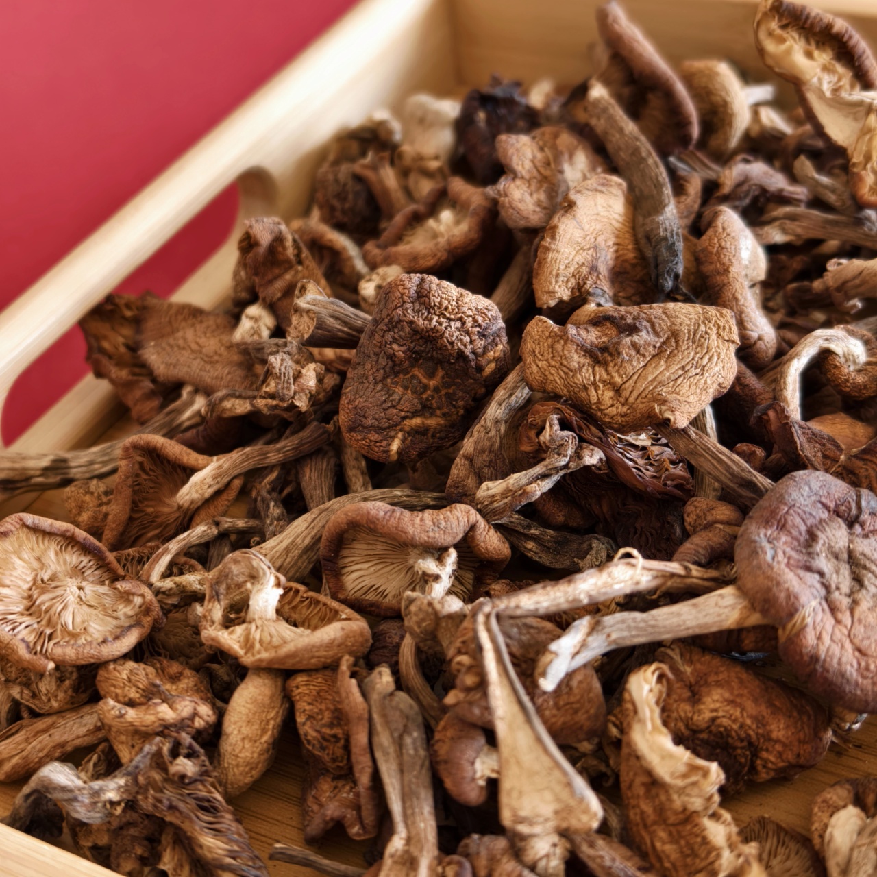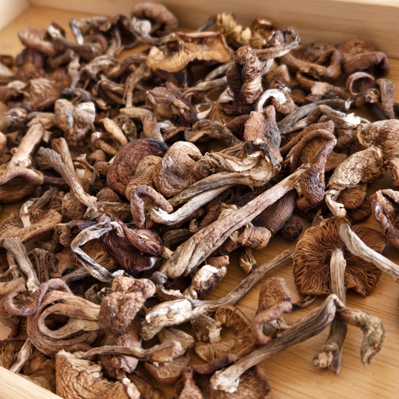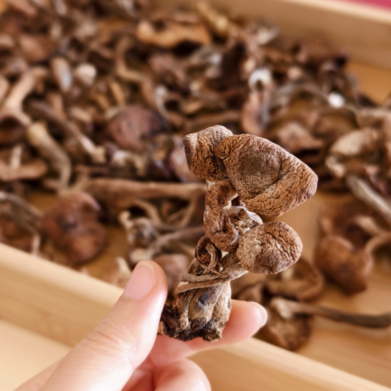 新鲜榛蘑保鲜期极短,因此东北人创造了独特的保存智慧将采摘的榛蘑细心清除泥土杂物,晒干后密封保存。