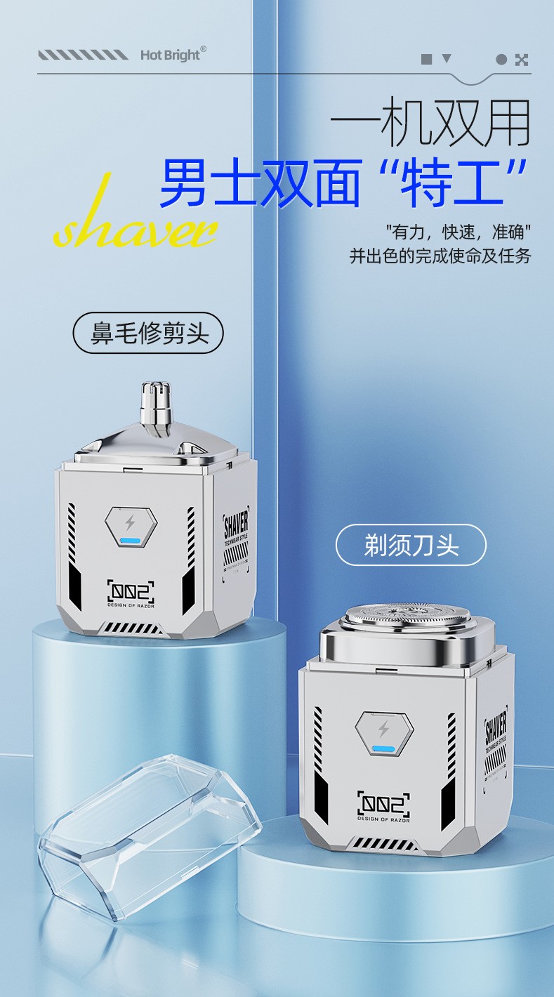 礼盒装【一机双用!面面俱到】掌心大小,轻巧便携,松匠小魔方二合一剃须鼻毛修剪便携述你电动刮胡刀送礼盒。ra
