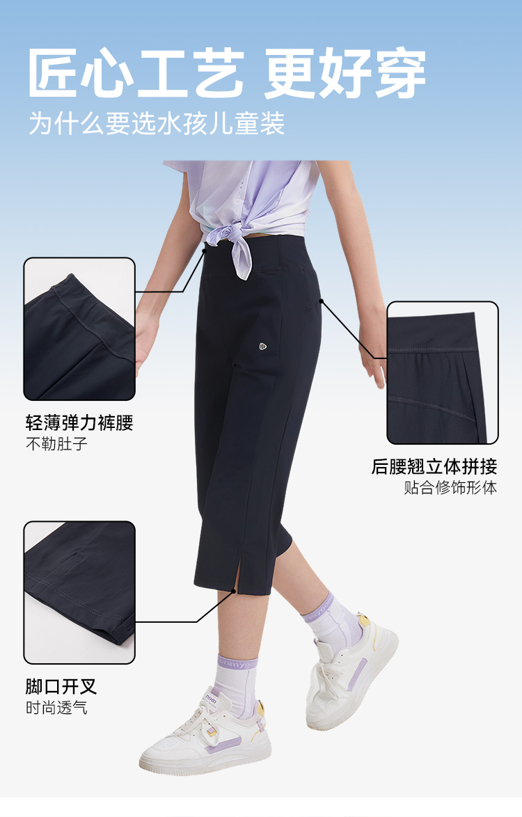 水孩儿童装防晒七分裤女童2026夏季新品凉感弹力短裤大童运动裤子