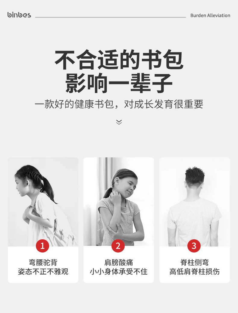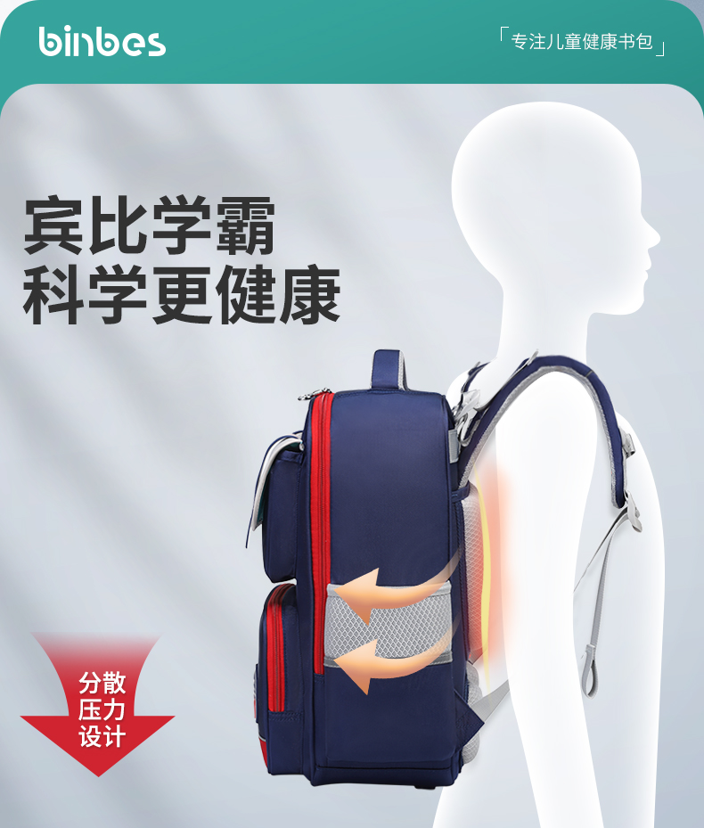宾比小学生书包1-6年级一二三四五六年级悬浮减重双肩书包顺丰包邮发货一年质保