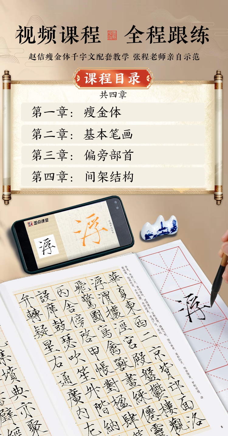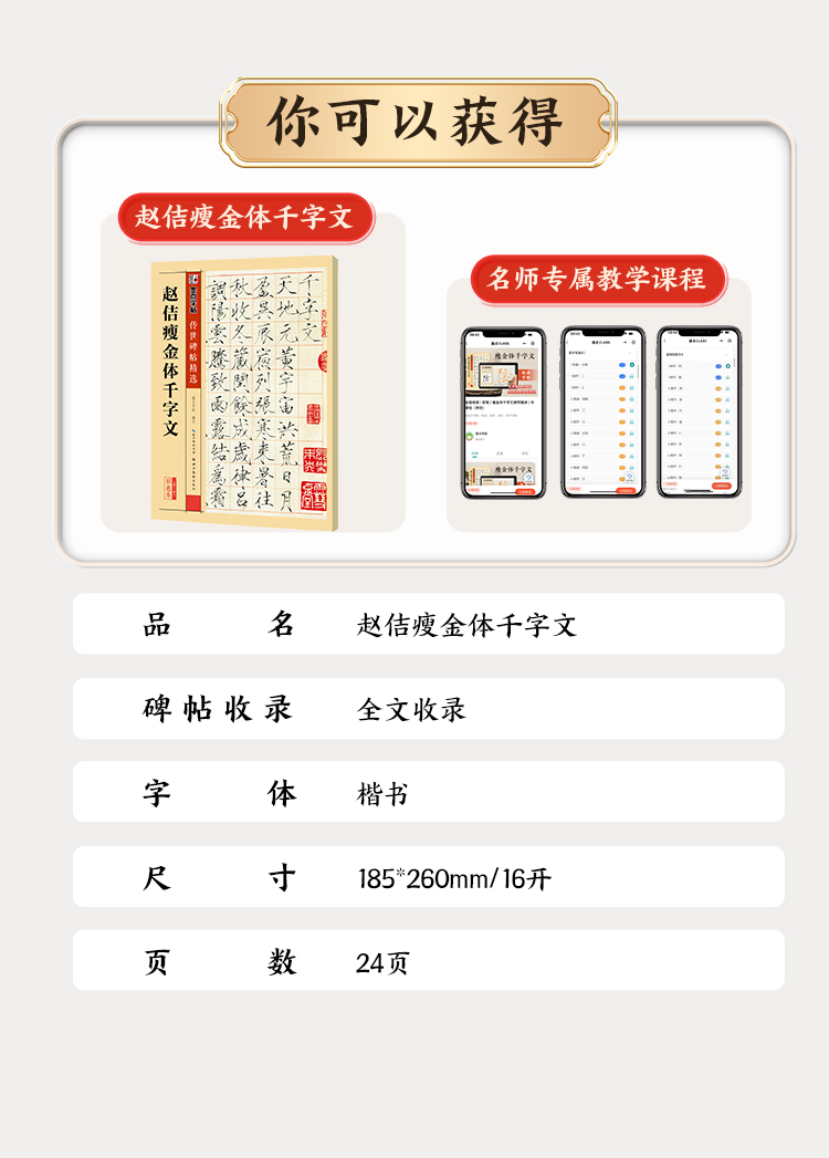 【书+课】赵佶瘦金体千字文视频课程毛笔入门字帖278个例字精讲笔顺练习