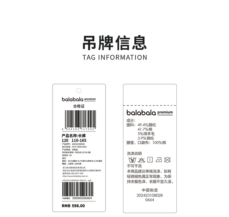 【premium】巴拉巴拉高端线冬摩登庄园系列仿毛织阔腿裤女