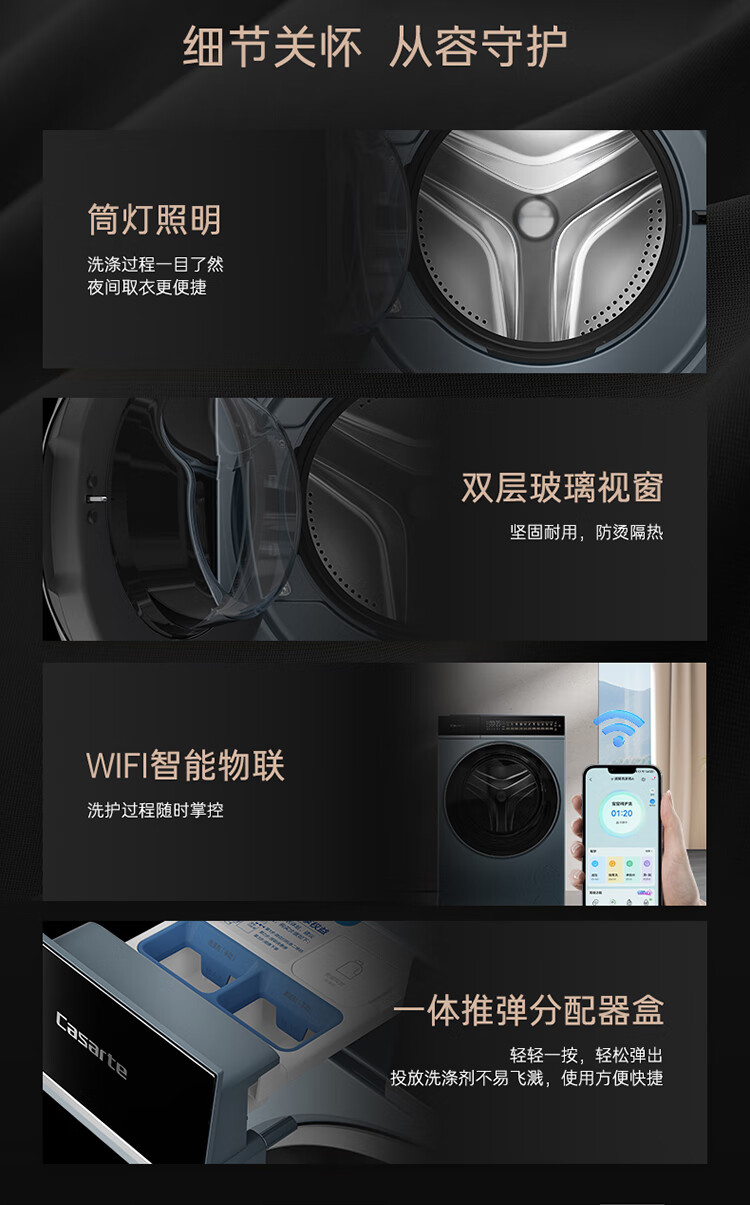 卡萨帝(Casarte)揽光GLB洗烘一体机 精华洗 洗净比1.12 直驱柔烘 智能投放 CE HB10LGLBU1