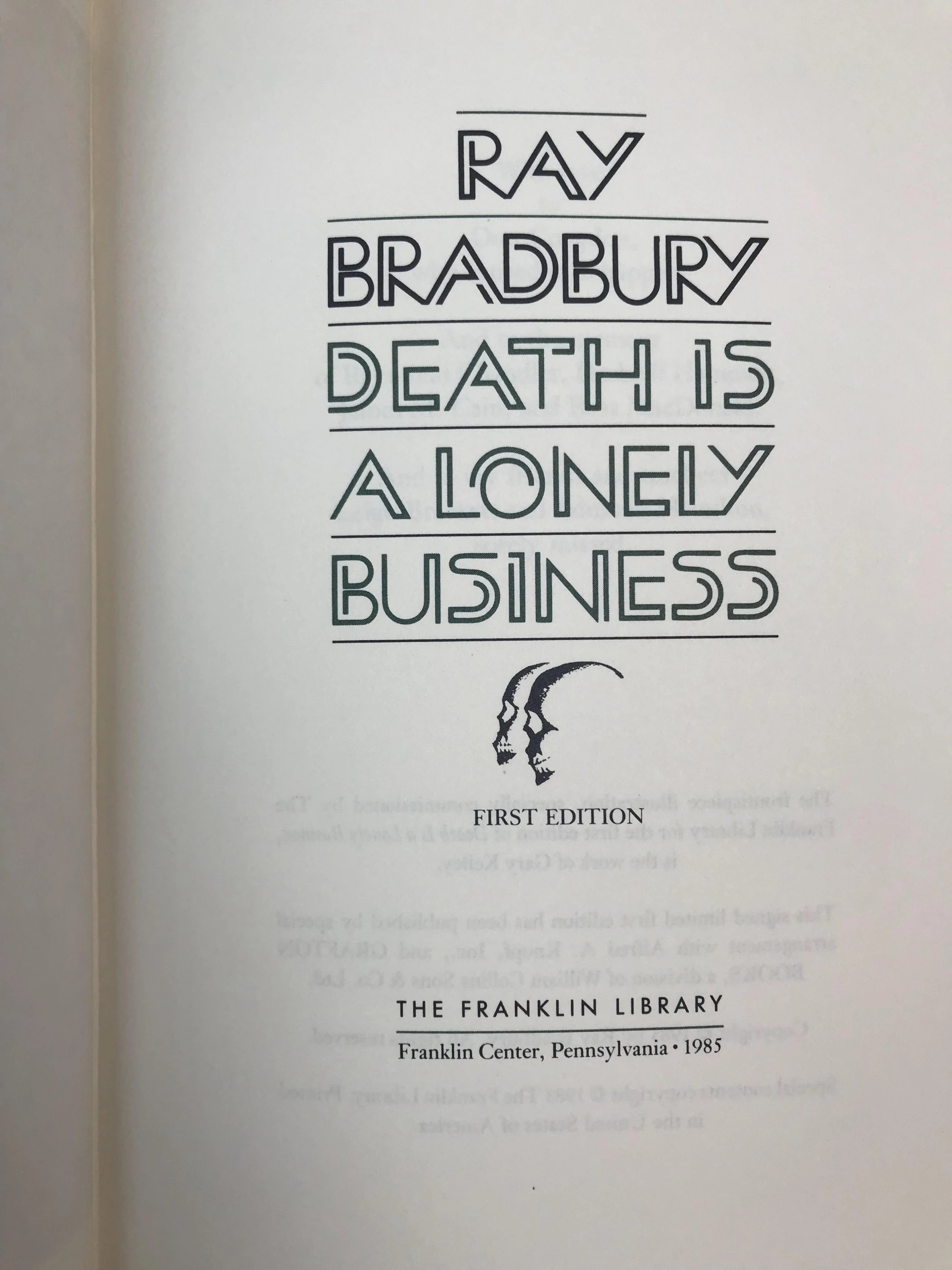 签名首版!雷・布拉德伯里《死亡是孤独的行当》 富兰克林图书馆豪华皮装本