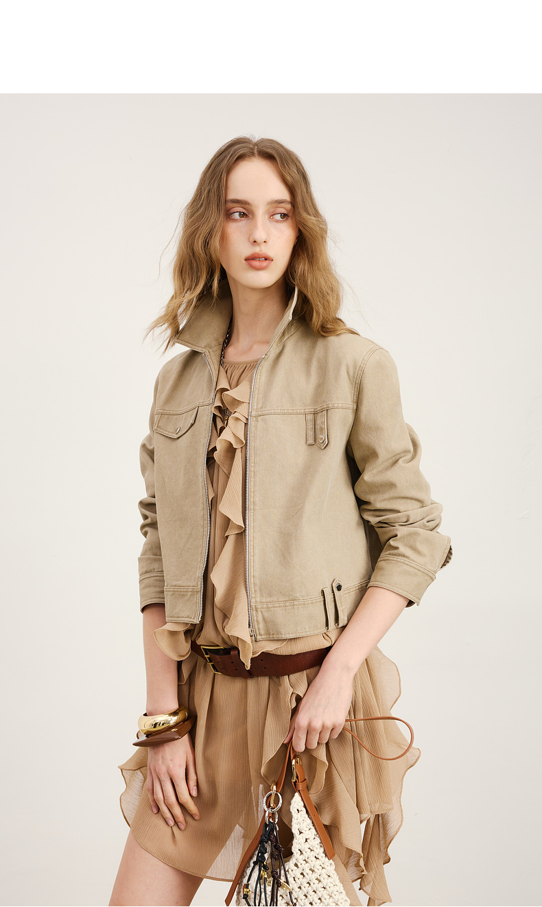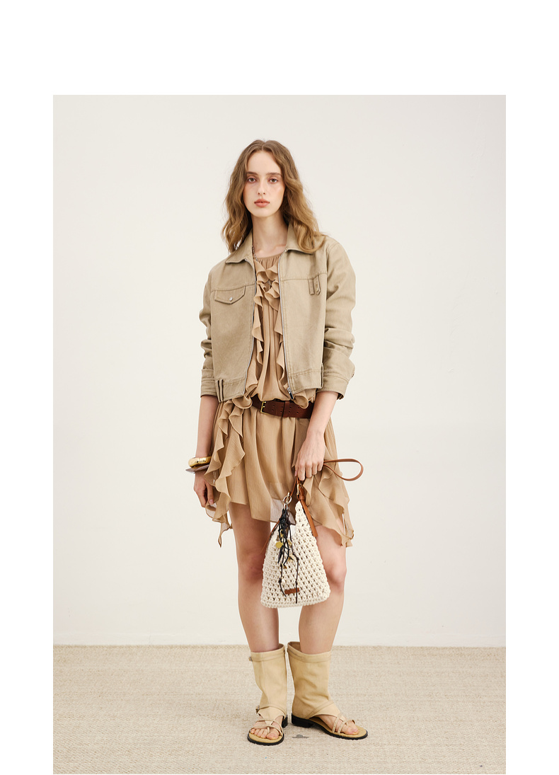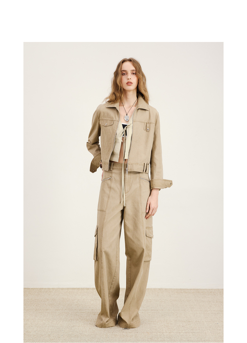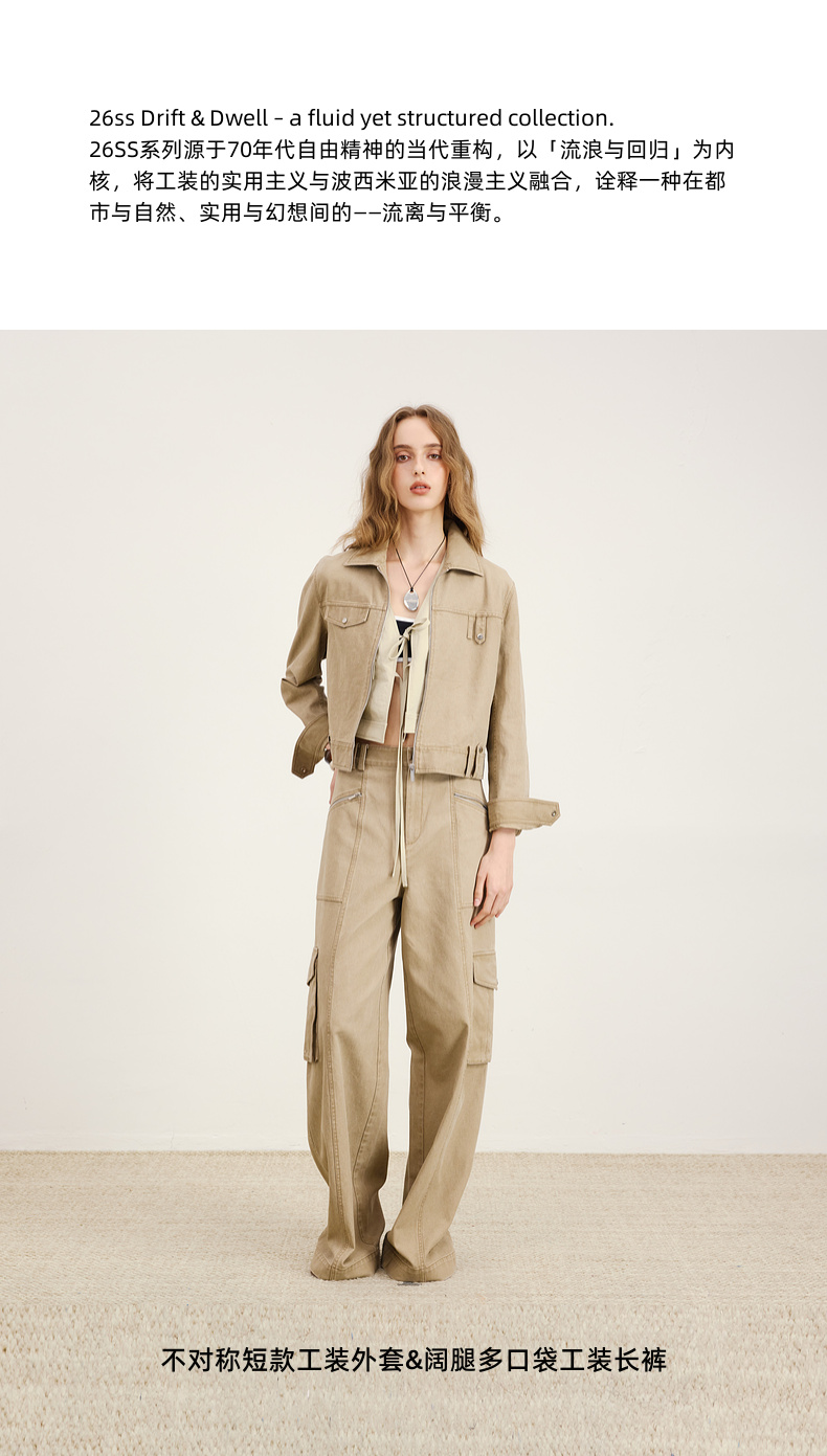 lost in echo2026年春季新款工装风独特不对称短外套多口袋阔腿裤
