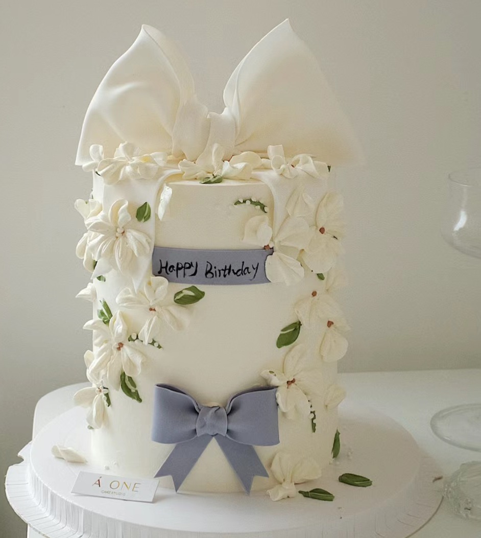 【臻品系列】---半翻糖双层叠高款【小清新蝴蝶结】