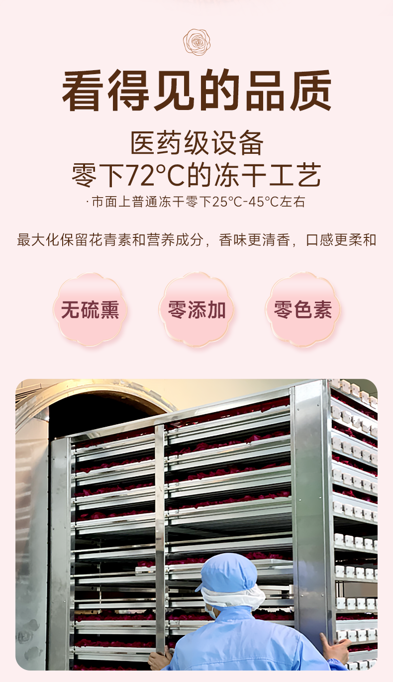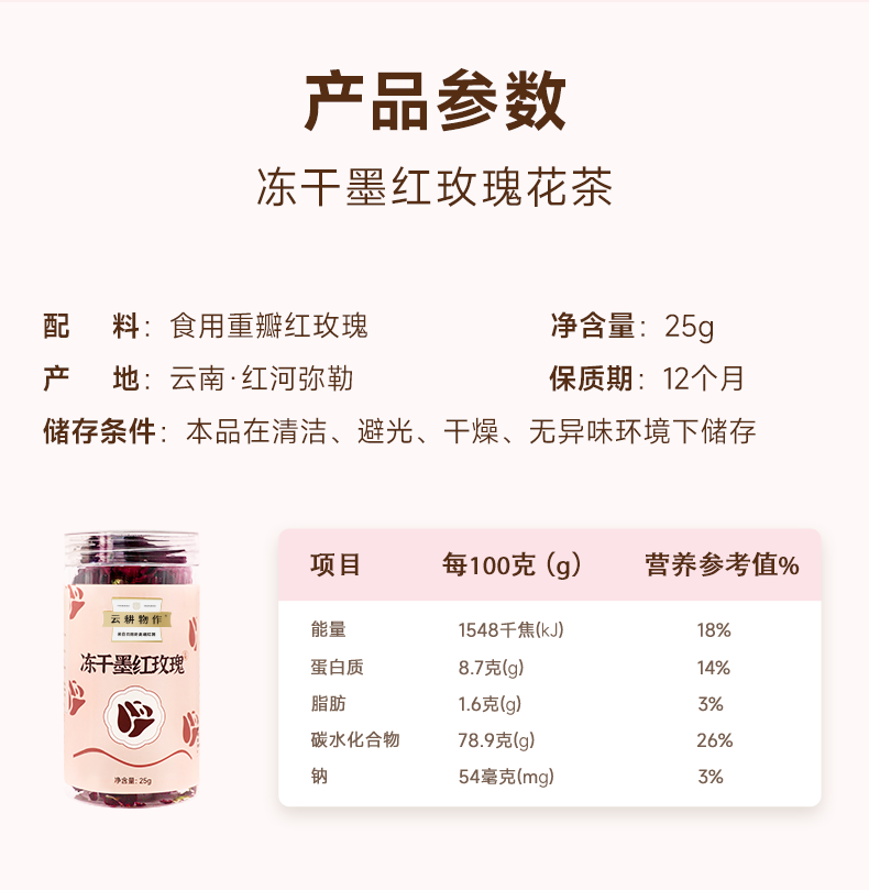 【冻干墨红玫瑰花茶】低温冻干工艺 25g/瓶