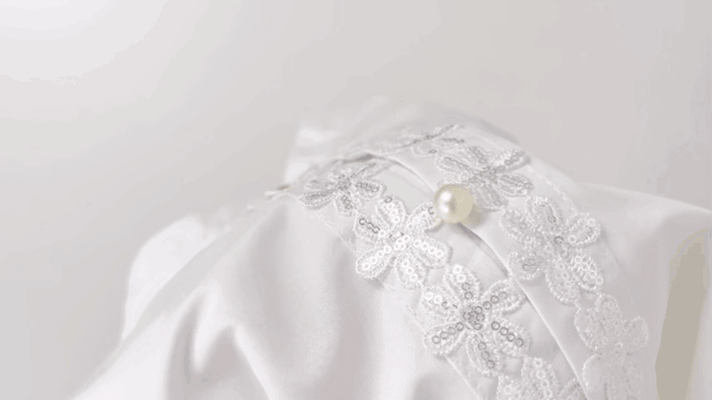 面料采用的是一种类似绸缎的材质,缎面光泽质感,柔挺有型,你看到实物就会被惊艳到