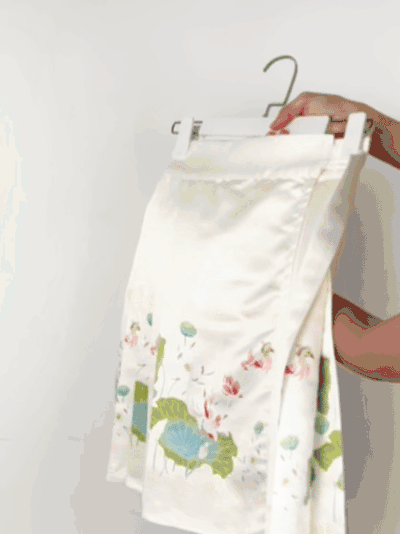 下身是缎面印花马面裙,贵气的缎面光泽感,丝滑不吸腿