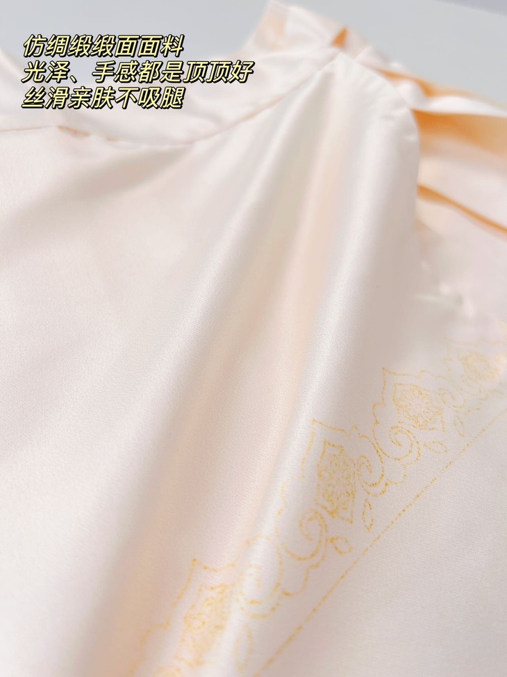 面料是那种仿绸缎的材质,有缎面光泽有质感