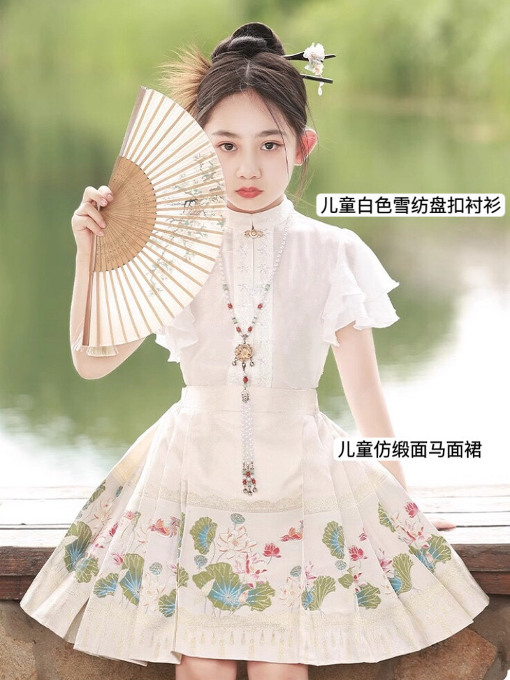 Im Presionismo这款儿童新中式马面裙套装家长们也可以上衣和马面裙分开选自己喜欢的哈