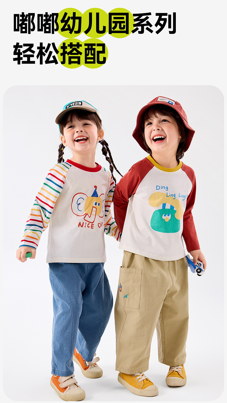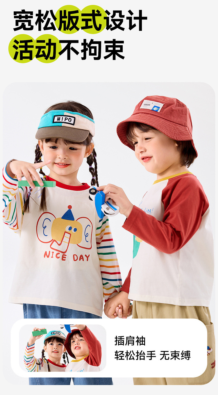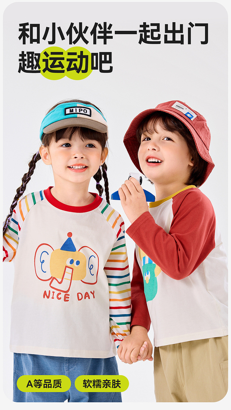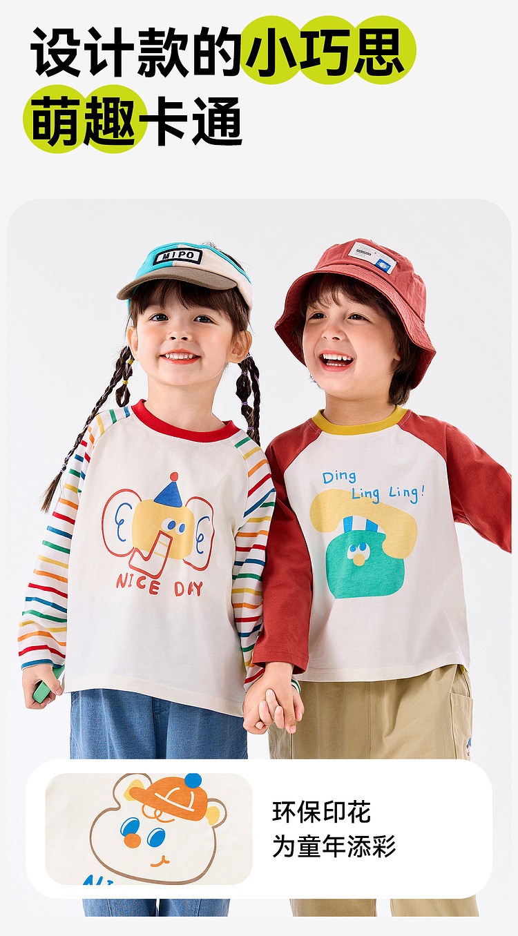 【2件装】嘟嘟家儿童T恤春装男童长袖上衣春季女童打底衫