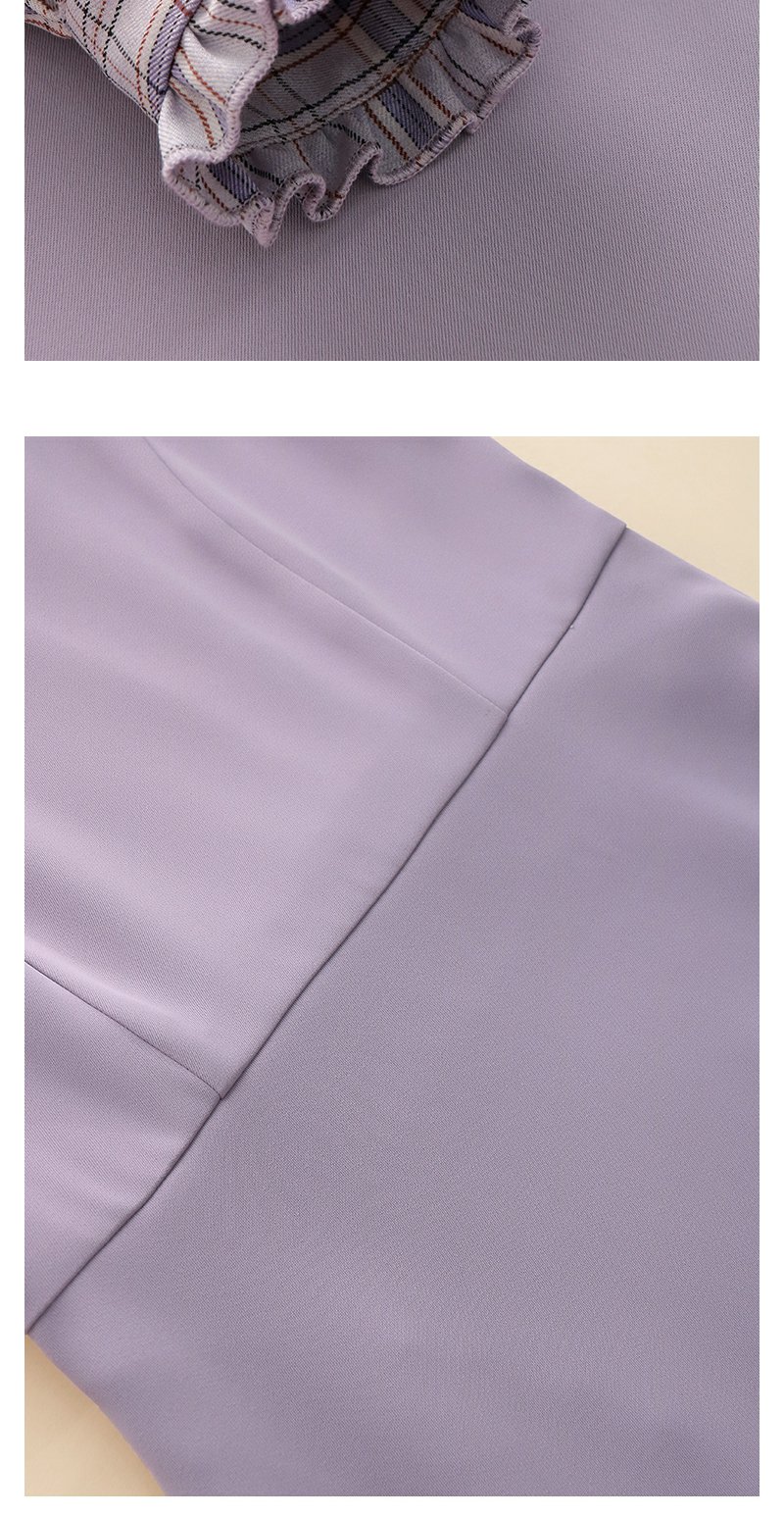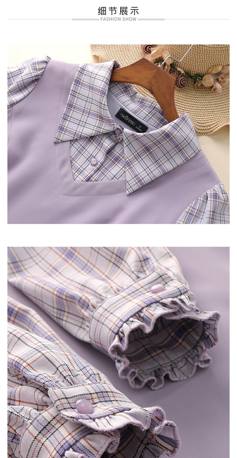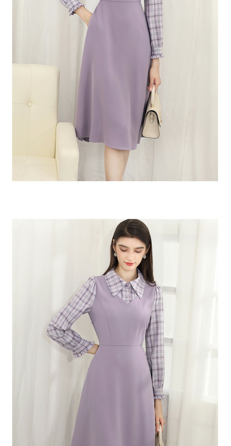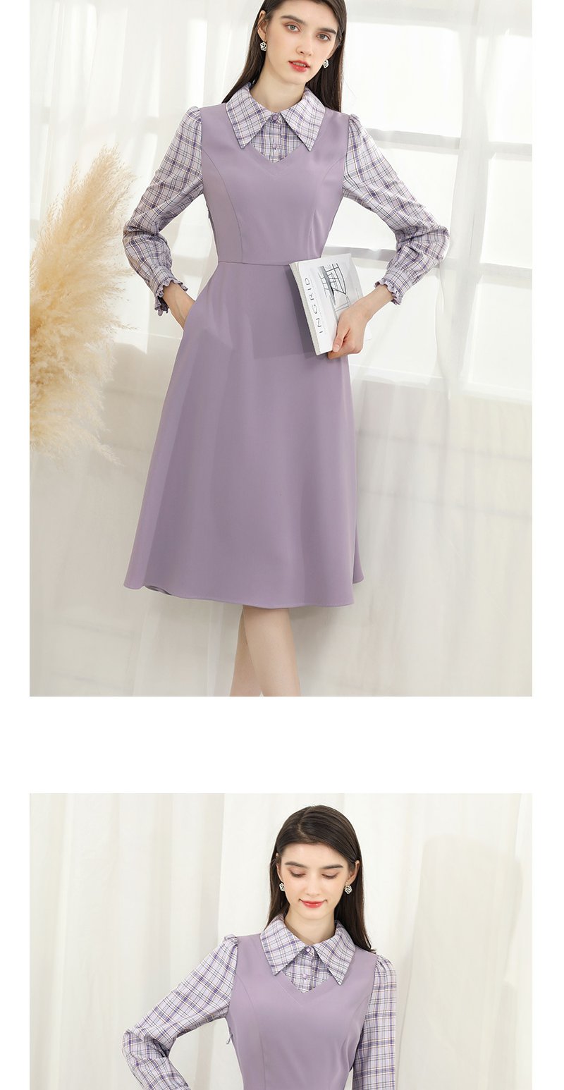 未风紫色格子连衣裙女春2024春季新款女装气质假两件显瘦长袖裙子