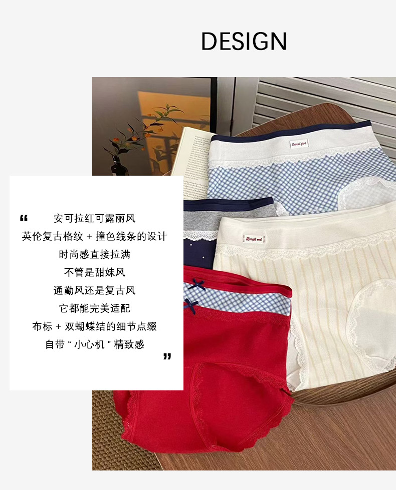 英伦复古格纹撞色宽边腰头女式内裤-纪念日百货门店同款166793231