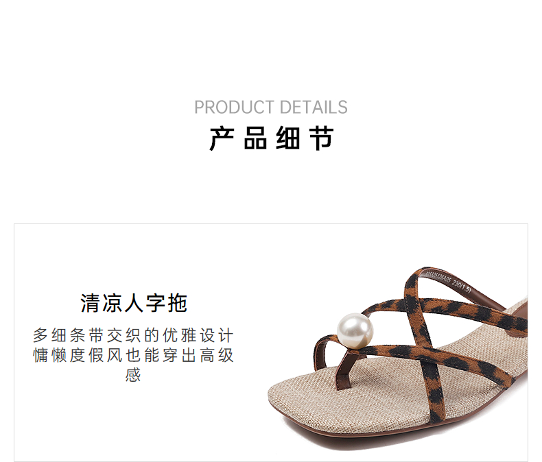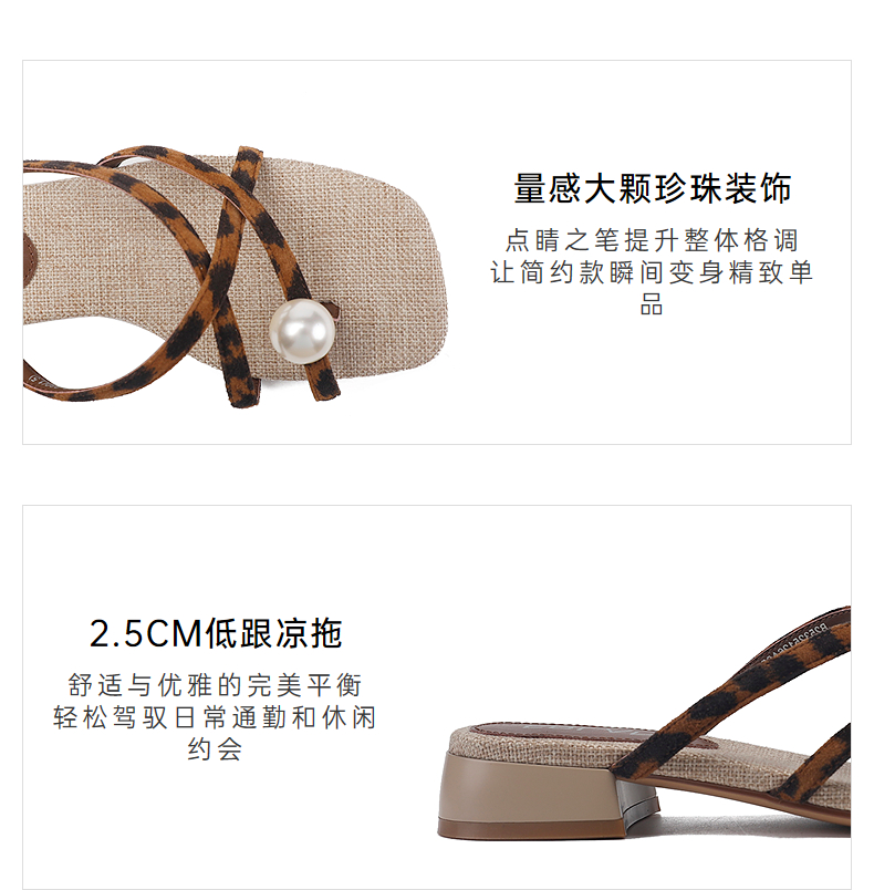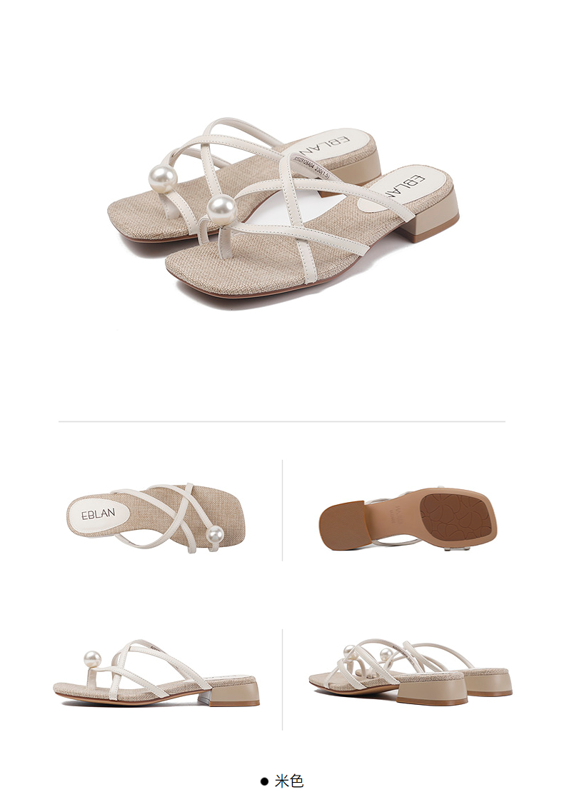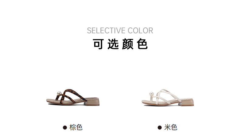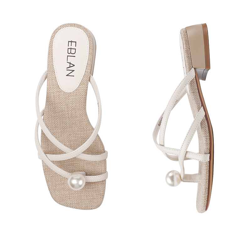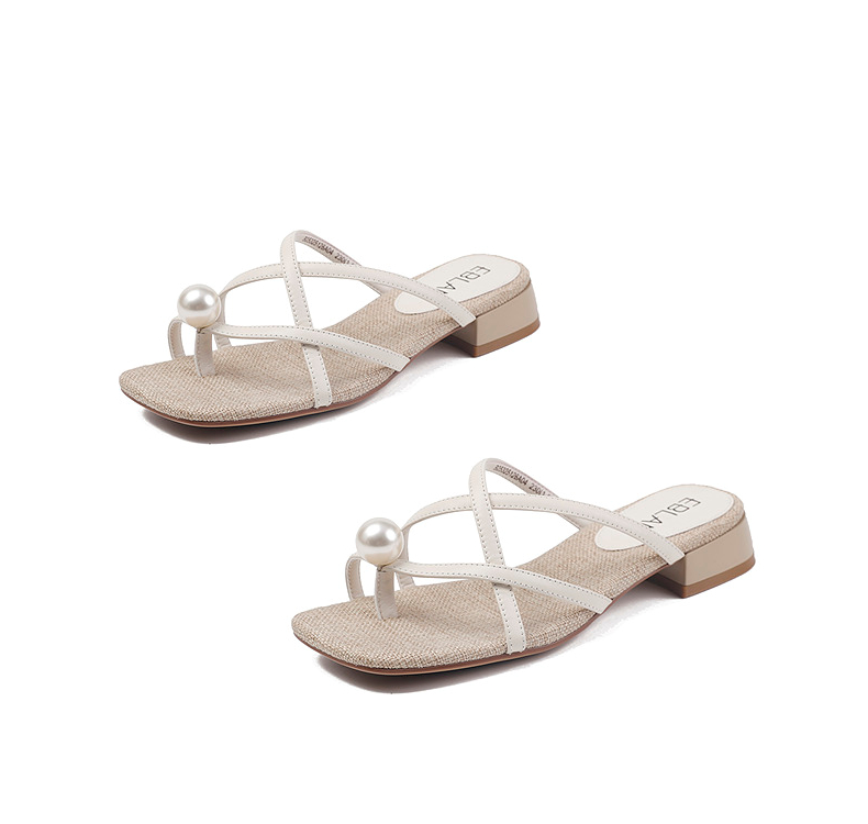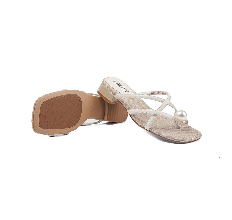 2楼伊伴2025夏季低跟清凉人字拖优雅珍珠时装凉拖B25325126