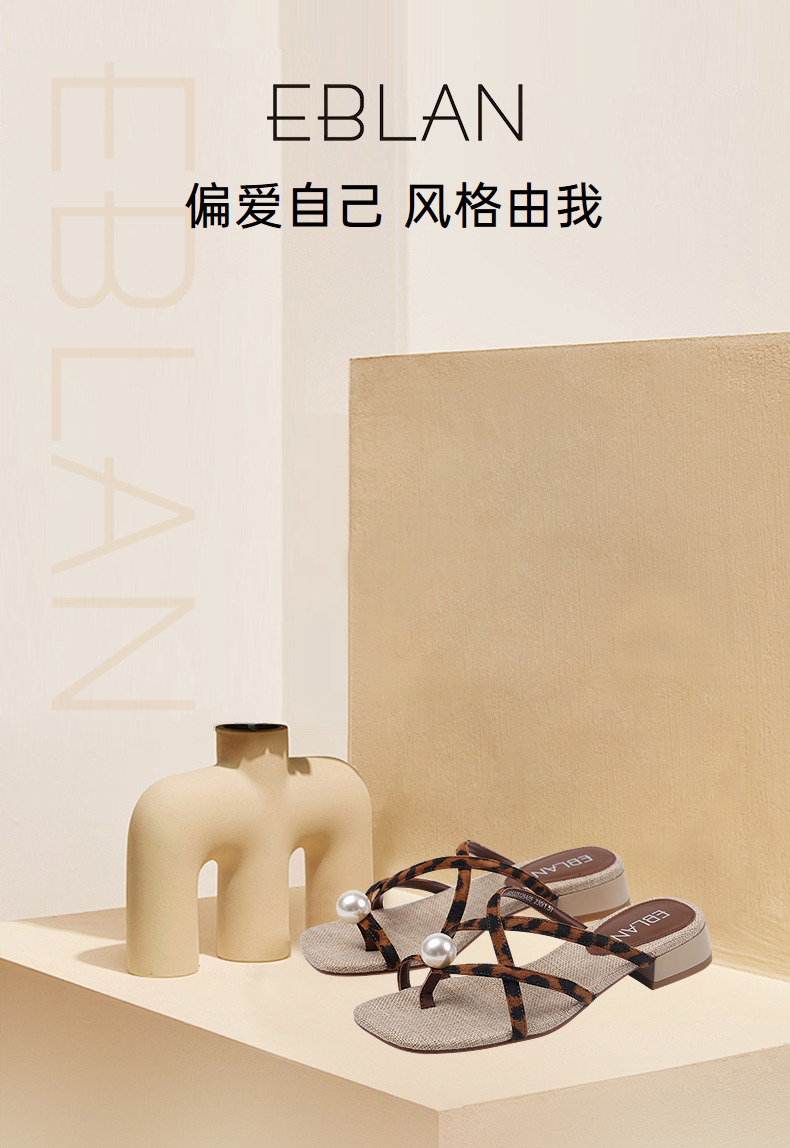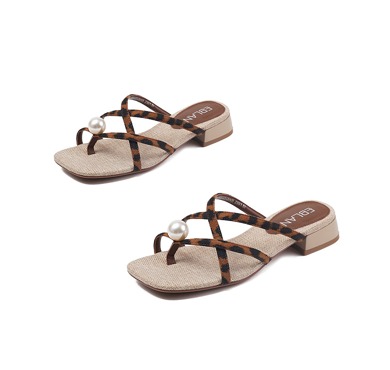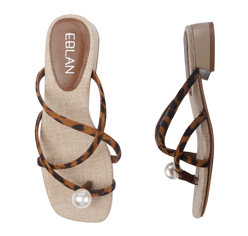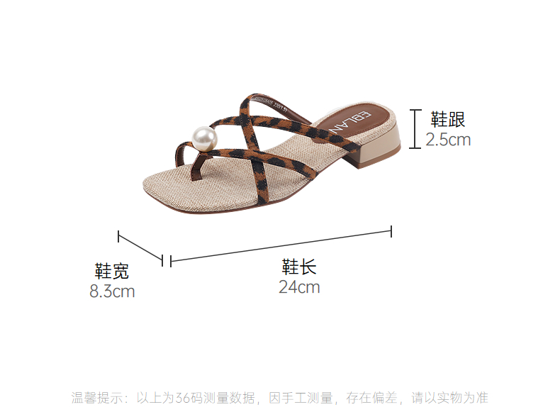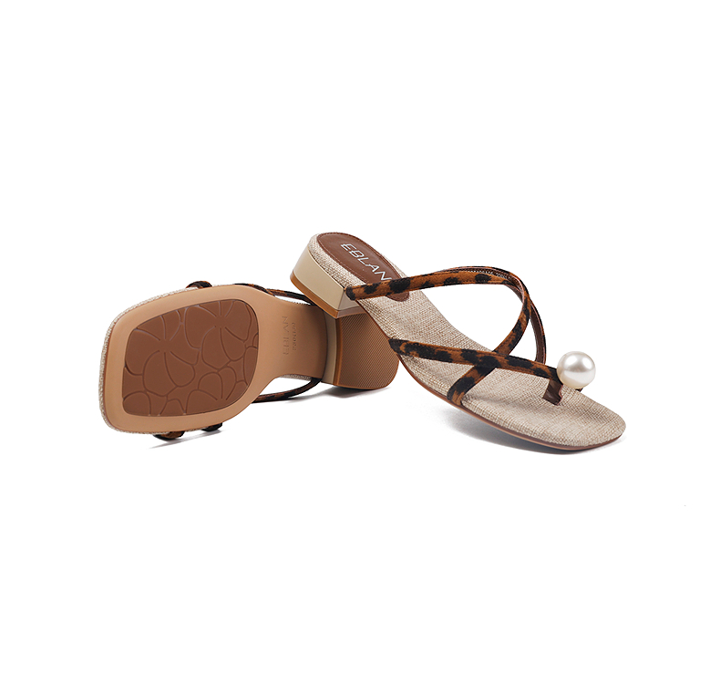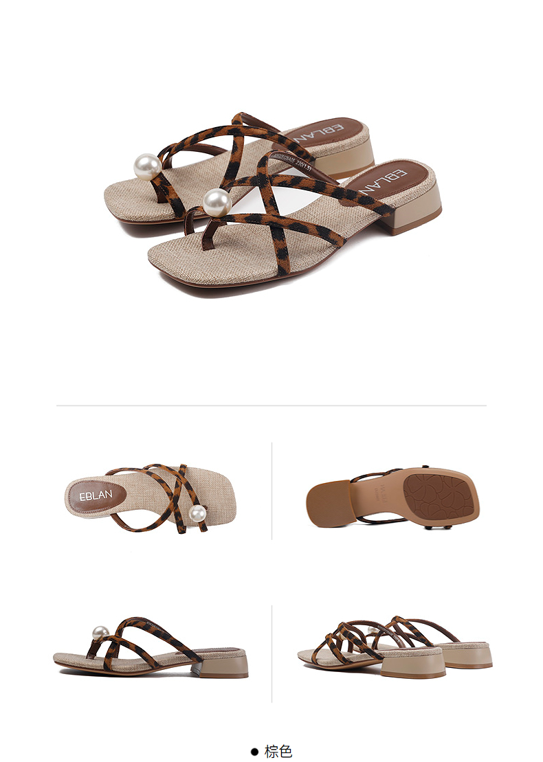 2楼伊伴2025夏季低跟清凉人字拖优雅珍珠时装凉拖B25325126