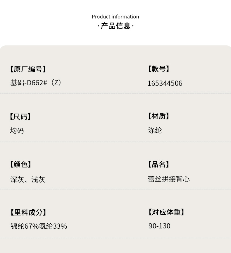 格雷色系蕾丝拼接小胸聚拢背心纪念日百货门店同款165344506